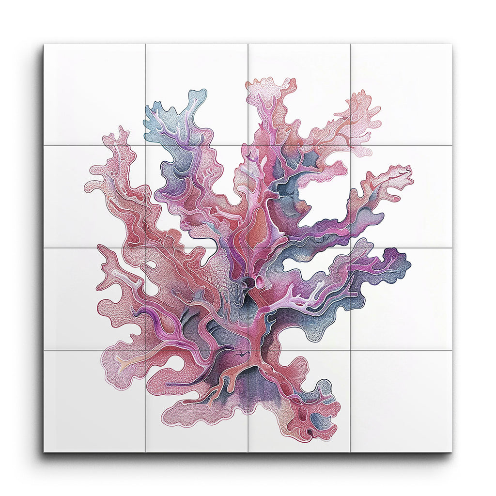 Immerse your space in the mesmerizing beauty of our tile mural, featuring an intricate and vibrant coral-like structure. This captivating piece showcases an array of organic, undulating forms that intertwine and overlap, creating a profound sense of depth and complexity. Rendered in harmonious shades of pink, purple, and blue, the artwork blends seamlessly to evoke a fluid and balanced composition. With its meticulous detail and abstract elegance, this mural captures the essence of natural beauty and intricate patterns found in nature.
