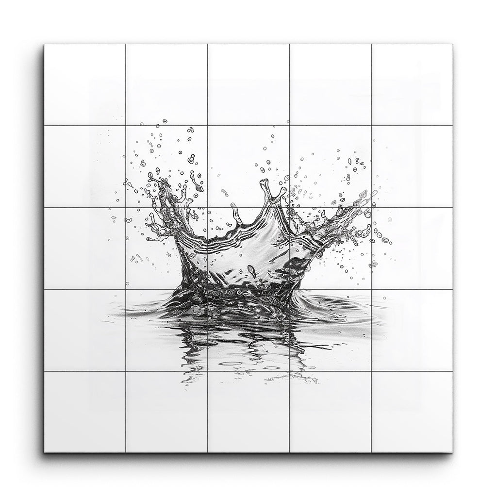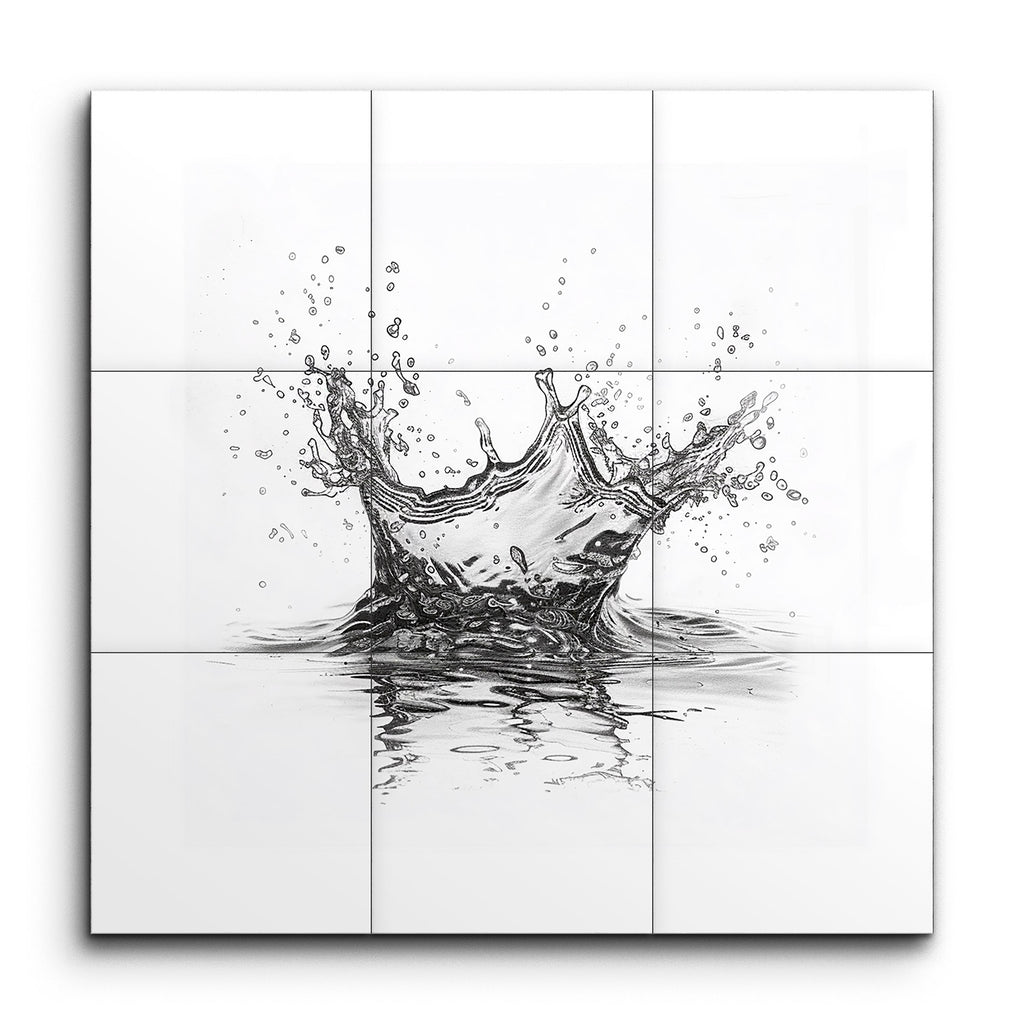Immerse your space in the captivating beauty of nature with this stunning tile mural. The artwork captures a hyper-realistic splash of water, frozen in time as it forms a crown-like shape upon impact. Rendered in monochromatic shades, every droplet and ripple is meticulously detailed, creating a three-dimensional effect that draws the eye. This dynamic and dramatic centerpiece brings the fluid elegance of water into your home, evoking a sense of tranquility and awe.