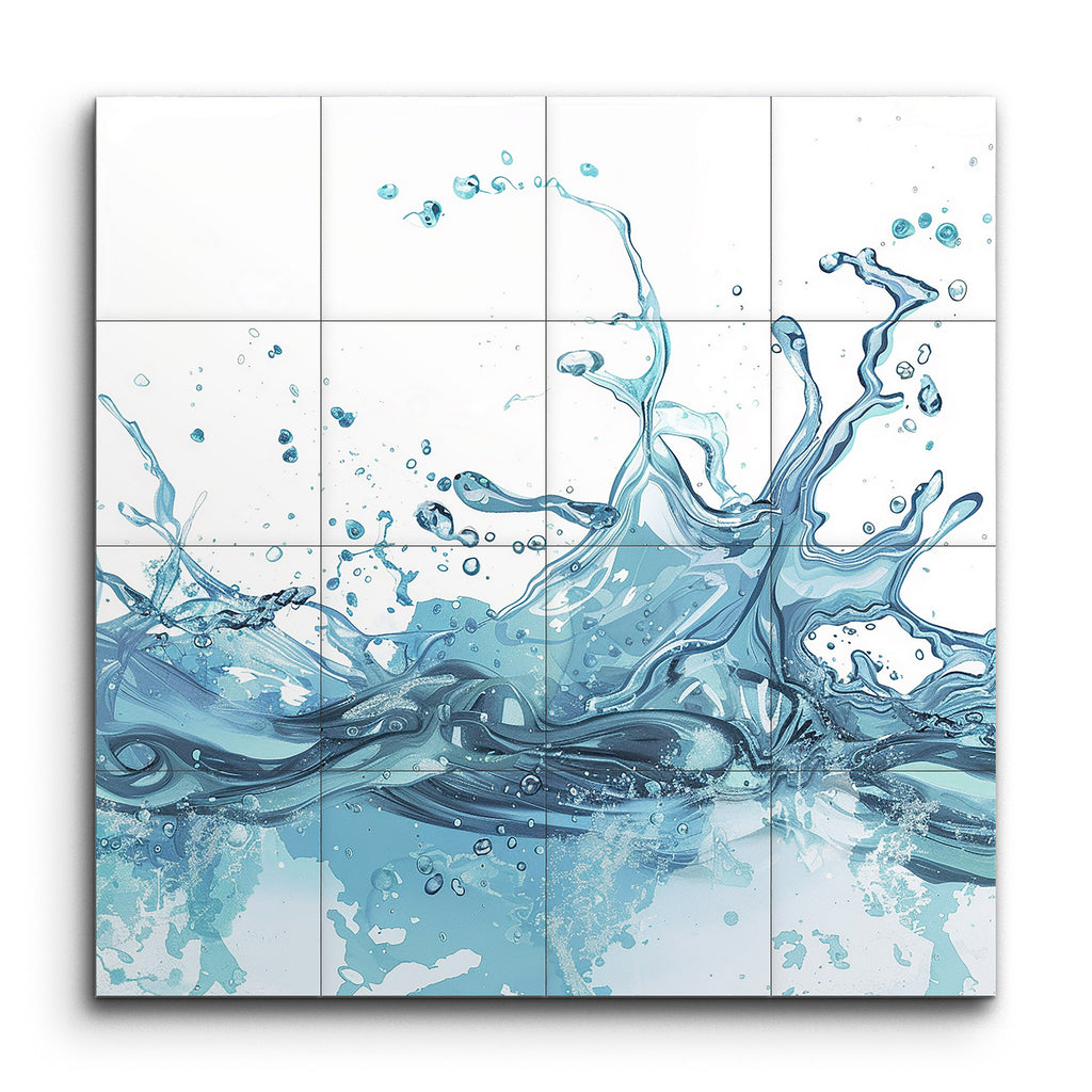 Dive into the mesmerizing world of water with our captivating tile mural. This artwork captures the dynamic essence of splashing water, blending realism with abstract artistry. Vivid shades of blue and white bring the scene to life, showcasing the fluidity and energy of each droplet and splash. The intricate play of light and shadow adds depth, making the water appear almost three-dimensional. Perfect for any space, this mural is a stunning celebration of motion and nature's beauty.