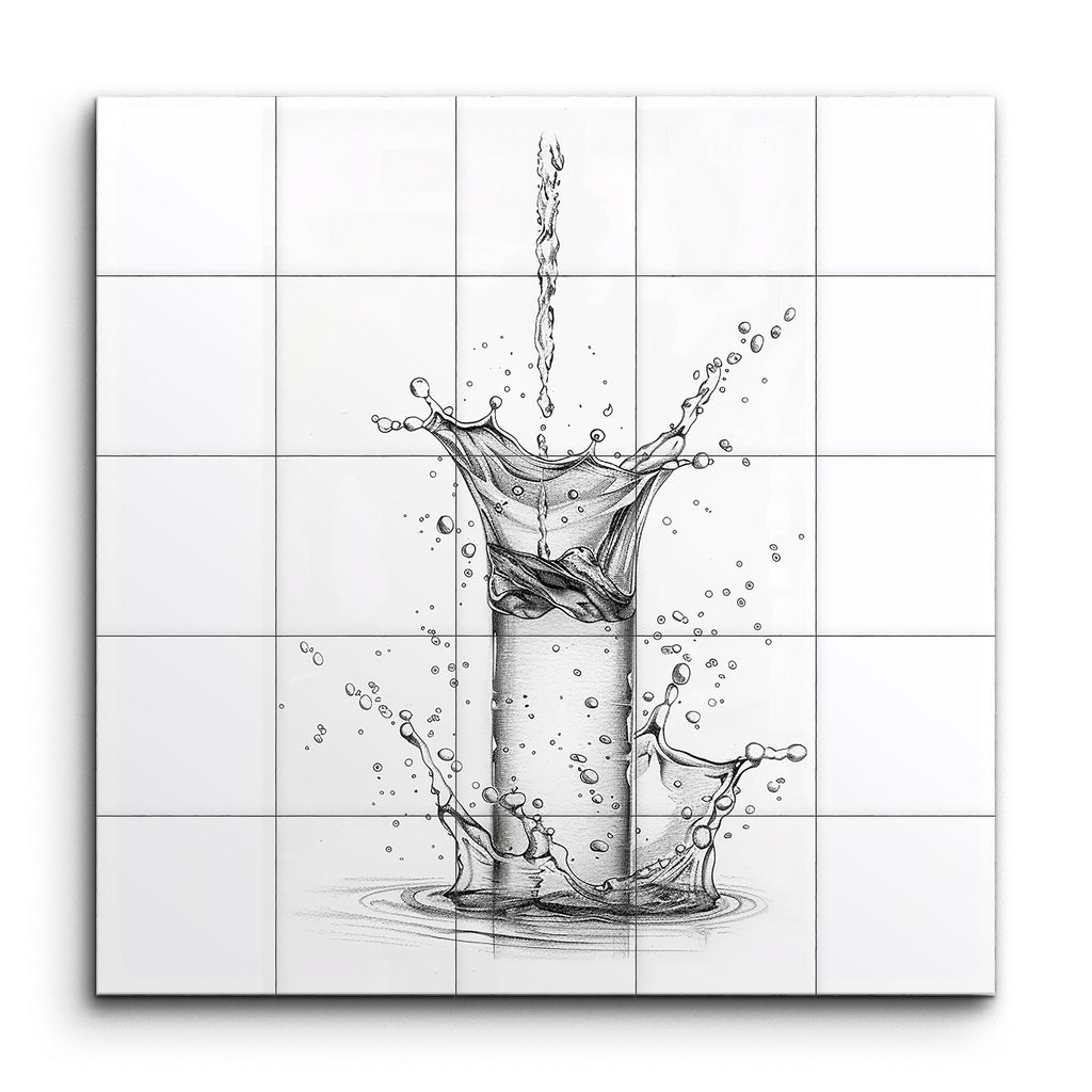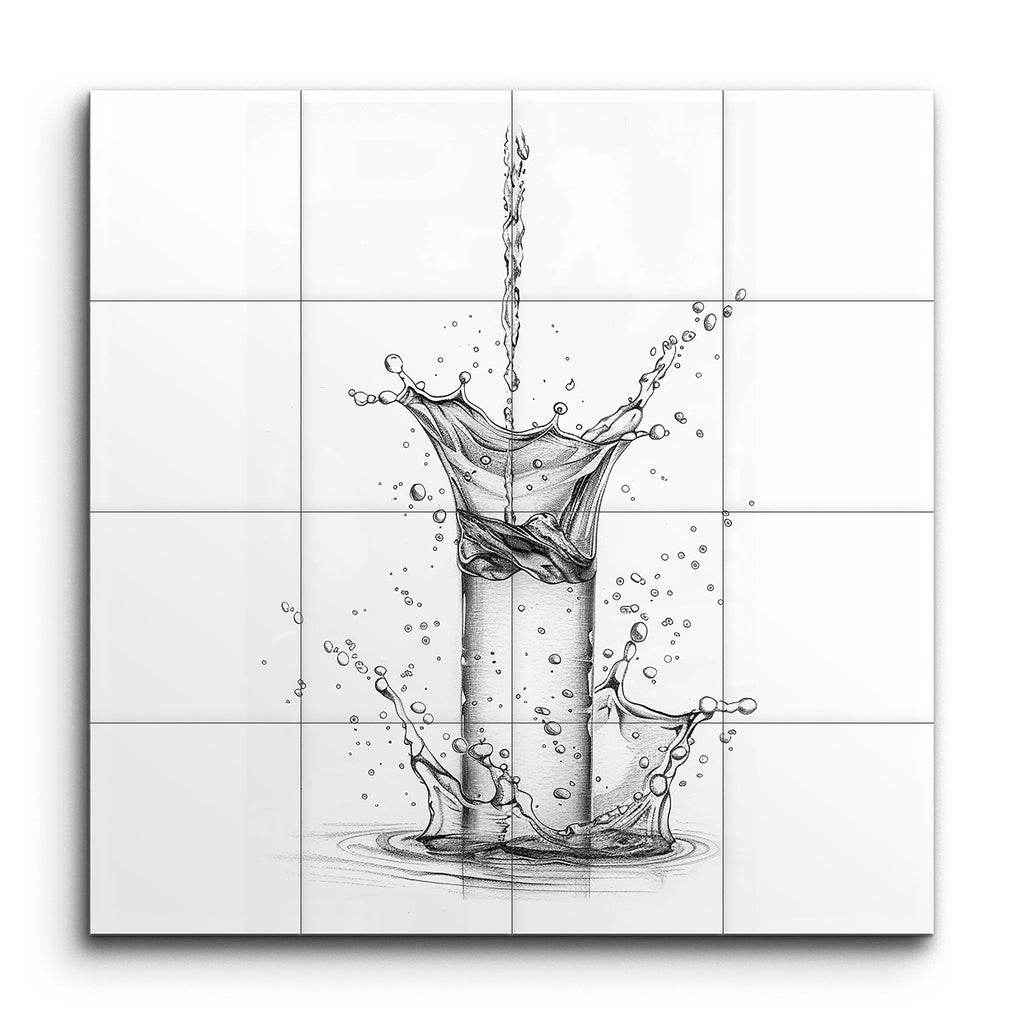 Immerse your space in the captivating beauty of fluid dynamics with this hyper-realistic tile mural. The artwork masterfully captures a droplet impacting a cylindrical column of water, creating a dynamic splash frozen in time. Each droplet and splash is meticulously detailed, showcasing the transparency, reflection, and motion of water. The interplay of light and shadow adds depth and realism, making the water appear almost tangible. This mural is a breathtaking homage to the elegance and energy of water in motion.