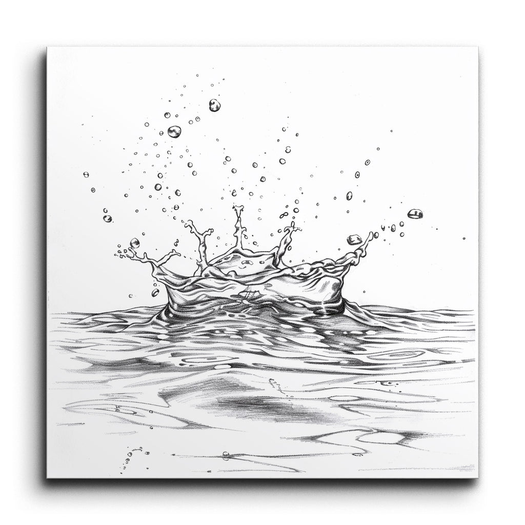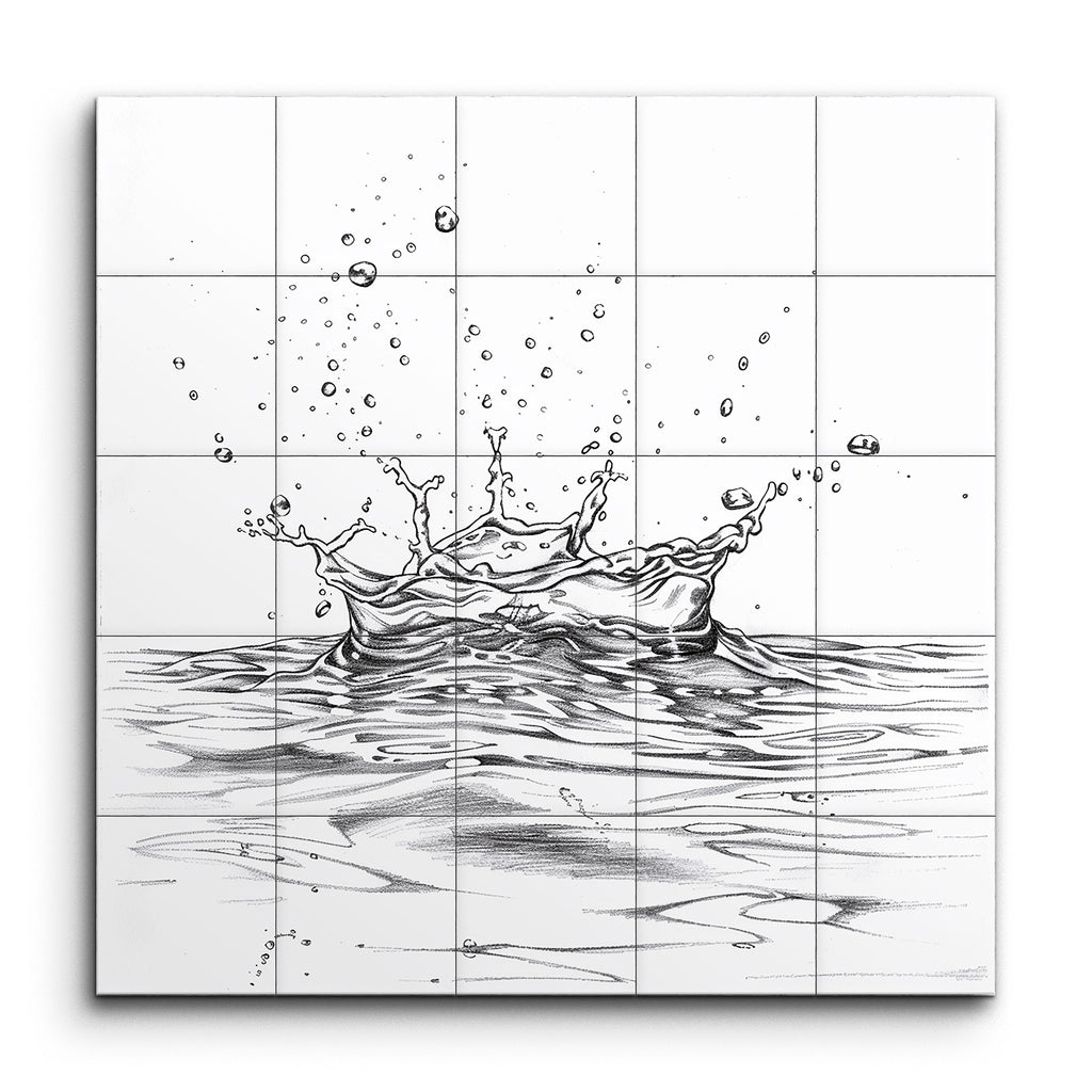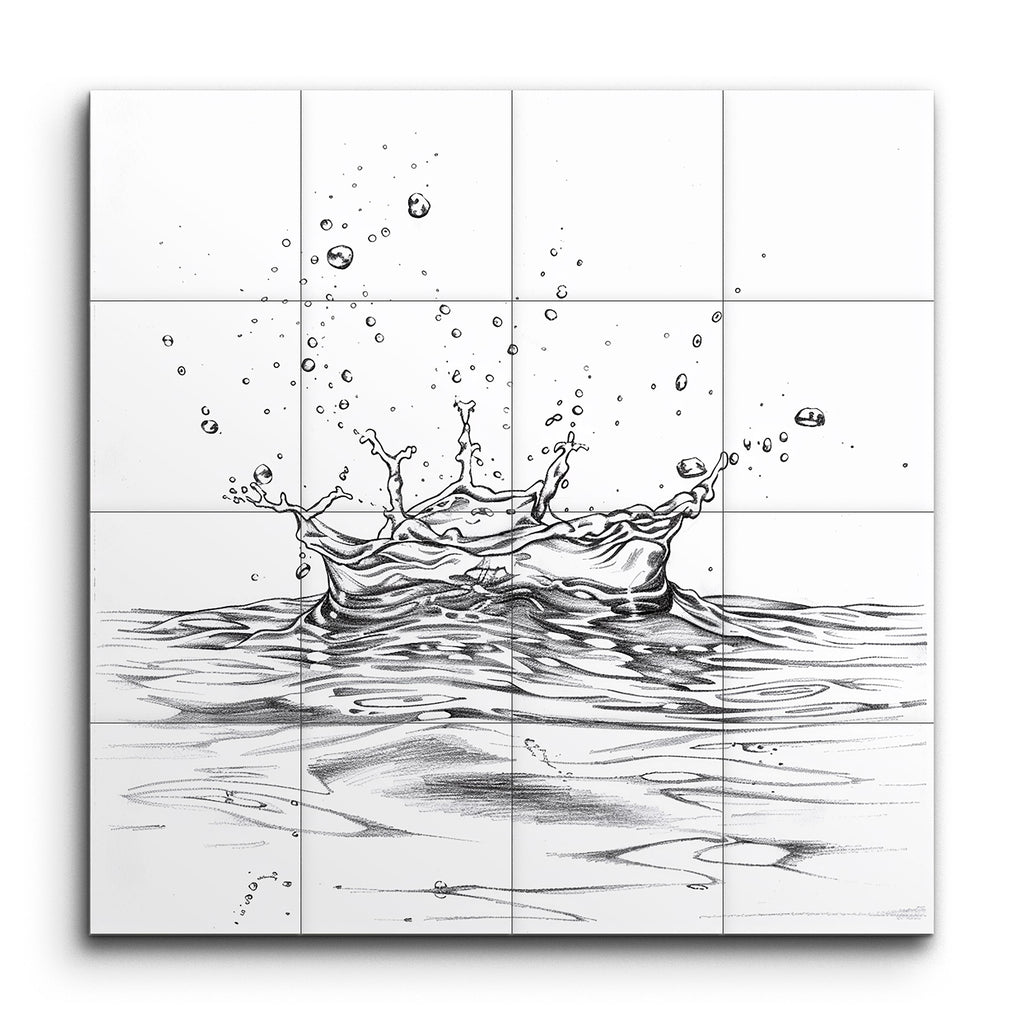 Immerse your space in the captivating energy of our tile mural, featuring an intricately detailed splash of water frozen in mid-motion. This monochromatic masterpiece, reminiscent of a pen-and-ink drawing, captures the dynamic beauty of droplets flying upwards and ripples spreading outwards. The clean, precise lines and subtle shading create a sense of fluidity and depth, transforming a fleeting moment into a timeless work of art that exudes both spontaneity and tranquility.