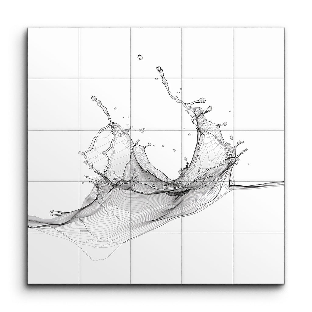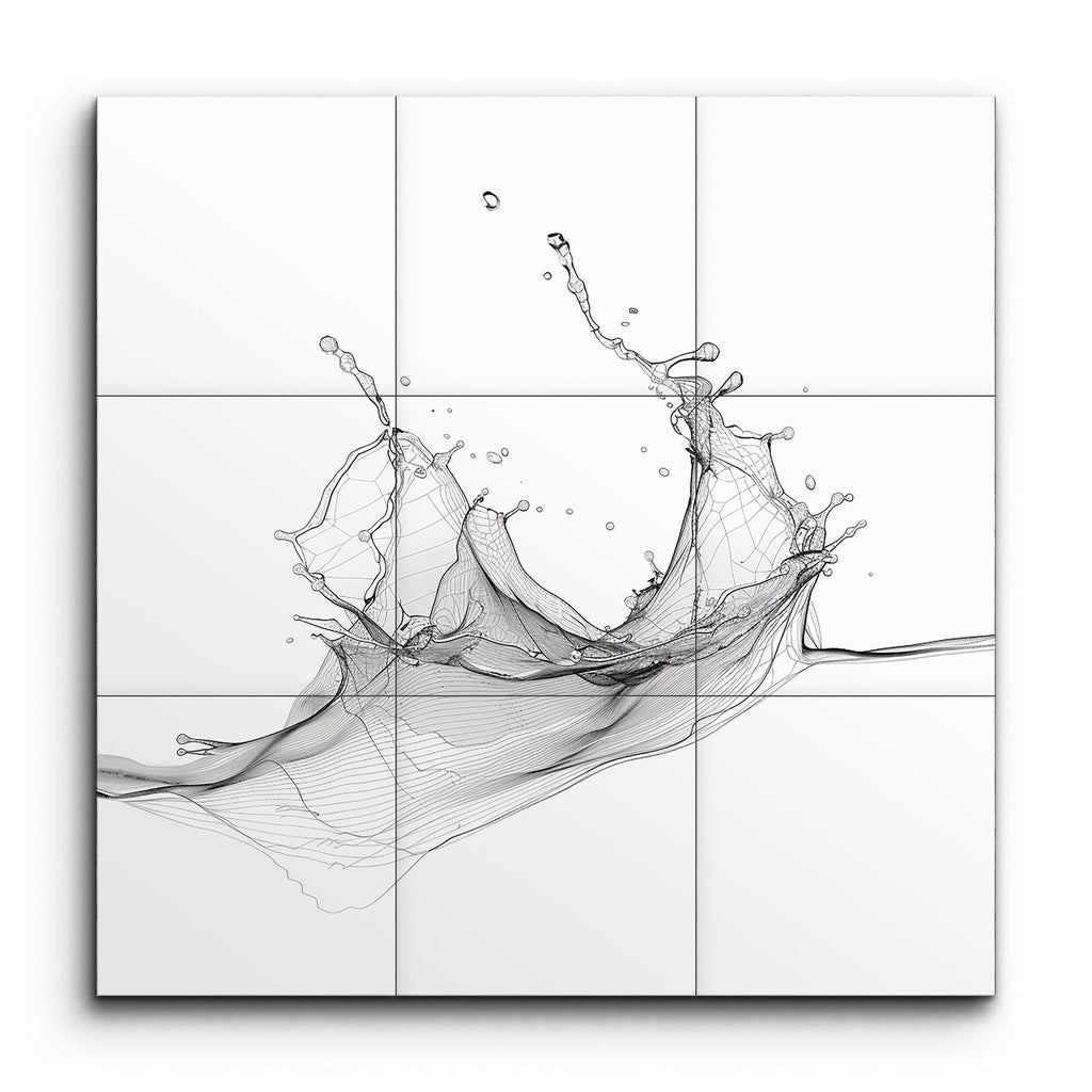 Immerse your space in the elegance of fluid motion with this captivating tile mural. The artwork features a dynamic splash or wave, intricately formed with fine, delicate lines that resemble a net-like structure. Each line is meticulously crafted to portray the movement and energy of water, with droplets and tendrils extending outward, creating a sense of depth and texture. This minimalist and modern piece highlights the elegance and complexity of line work, making it a stunning focal point in any setting.