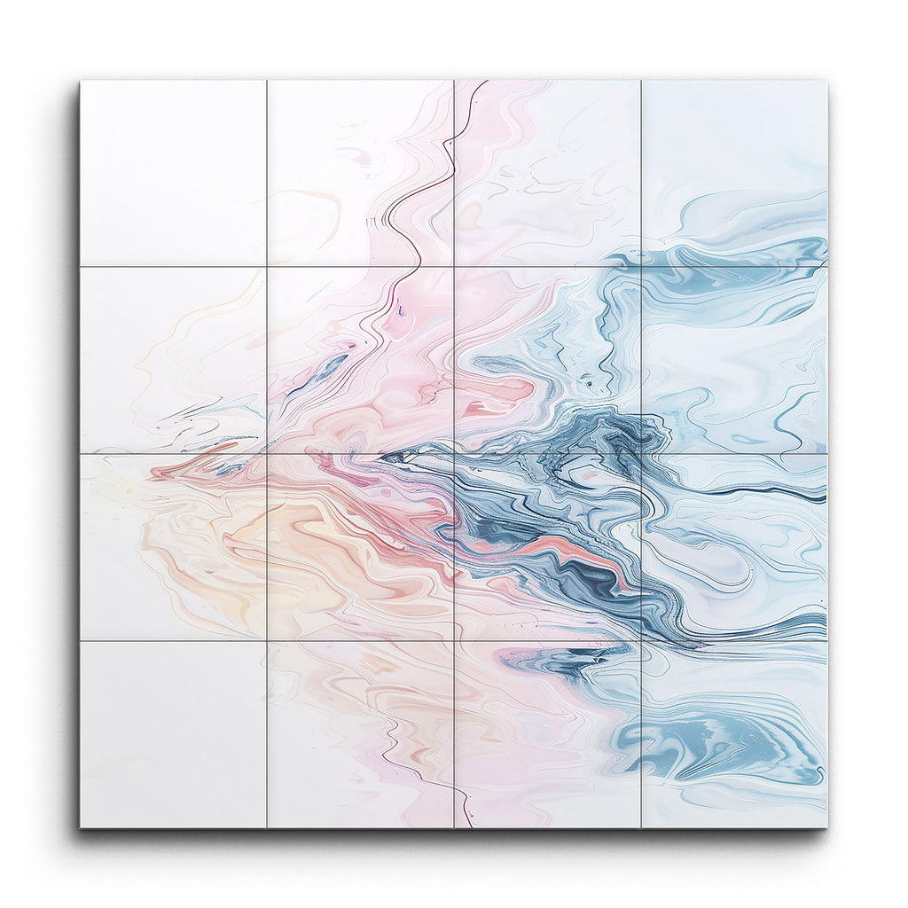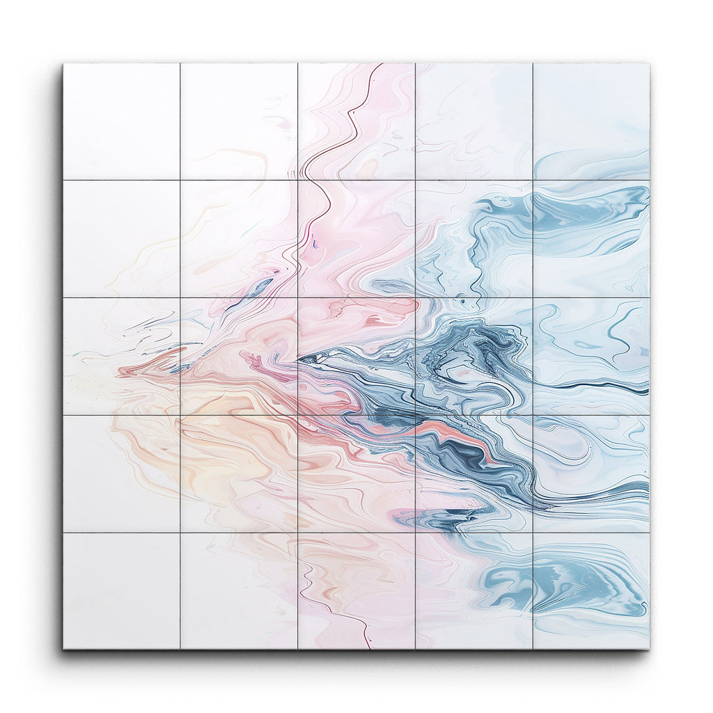 Transform your space with this captivating tile mural, showcasing an abstract design of fluid, swirling patterns. Soft pastels like pink, blue, and peach blend seamlessly, evoking a sense of movement and depth akin to liquid or smoke. The gradient transitions between hues create a calming, ethereal effect, reminiscent of marbling or fluid art. This dreamy, serene artwork will infuse any setting with a harmonious and organic flow, inviting tranquility and visual intrigue.