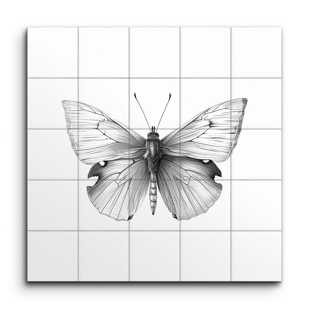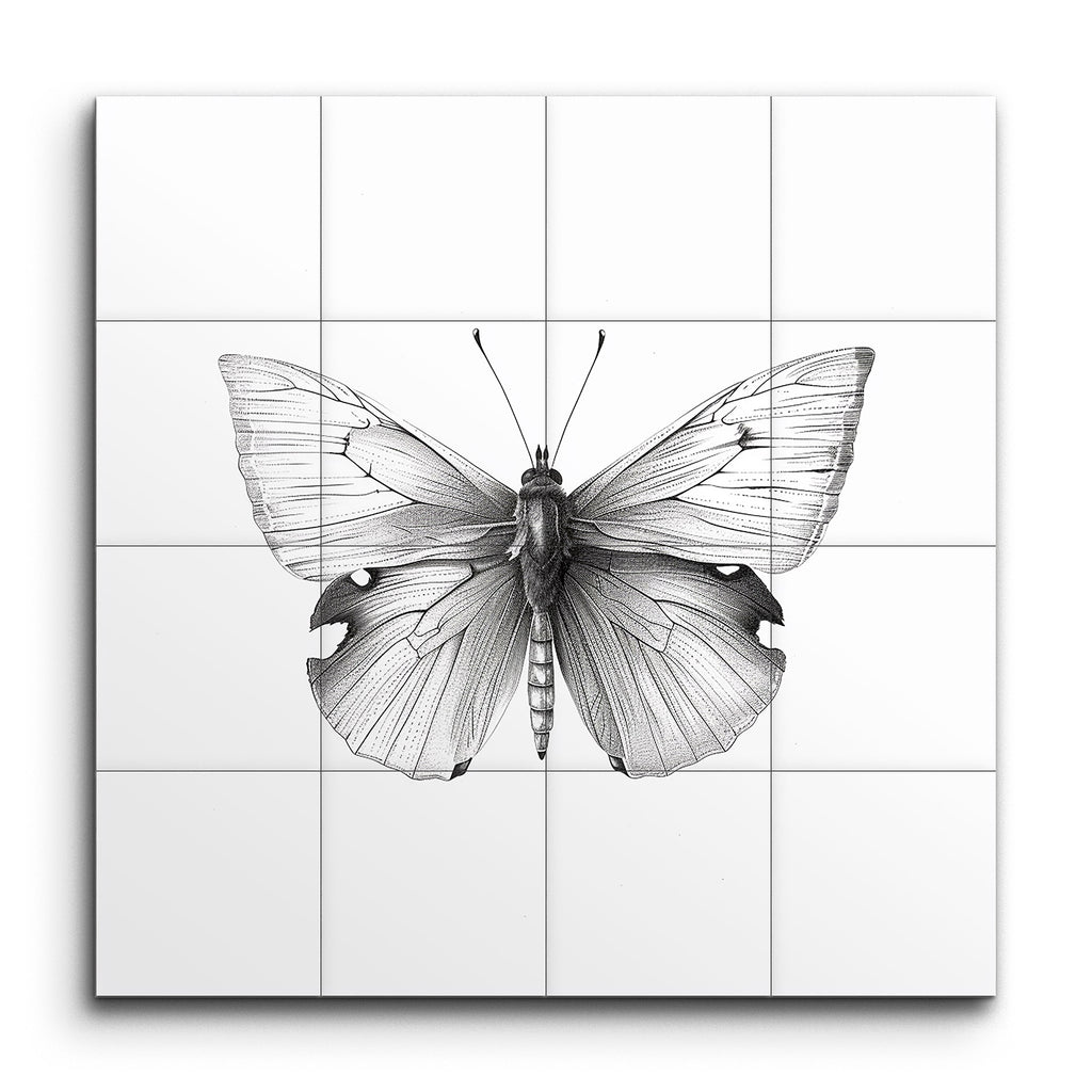 Transform your space with this meticulously crafted tile mural featuring a stunning, realistic illustration of a butterfly. The butterfly is captured in exquisite detail, with wings spread open to reveal intricate patterns and vein-like structures that exude lifelike elegance. The monochromatic shades of grey and black accentuate the precision of the artwork, giving it a timeless, classic appeal. This mural is a perfect blend of scientific accuracy and natural beauty, bringing a touch of nature's grace into your home.