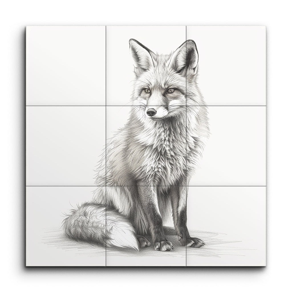 Transform your space with this captivating tile mural featuring an exquisitely detailed pencil sketch of a fox. The artist's masterful technique brings the fox to life, showcasing its soft, fluffy fur with intricate lines that create depth and texture. The fox's lifelike expression of alertness and curiosity is captured through meticulously drawn facial features. Subtle shading enhances the three-dimensionality, making this realistic portrayal a stunning focal point for any room.
