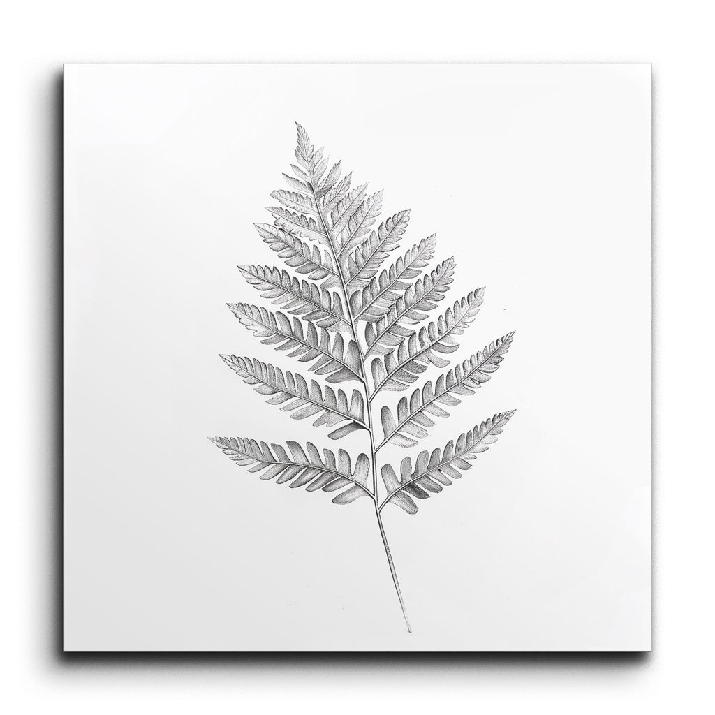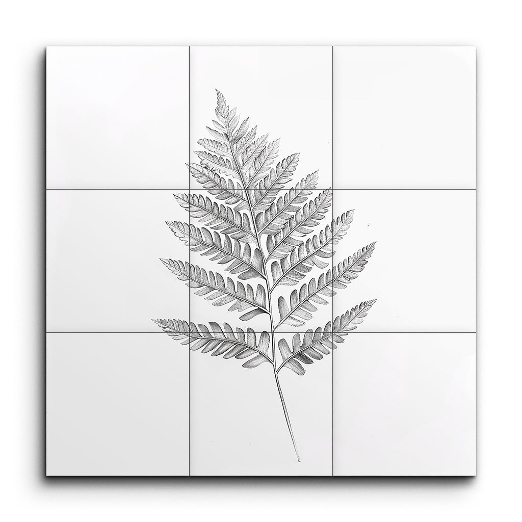 Transform your space with this exquisite tile mural featuring a minimalist yet highly detailed illustration of a fern leaf. Each leaflet is meticulously rendered, capturing the natural symmetry and delicate intricacies of the plant. Fine, precise lines and subtle shading bring a realistic, almost three-dimensional quality to the artwork. The clean and elegant composition highlights the fern's natural beauty and complexity, adding a touch of sophistication to any setting.