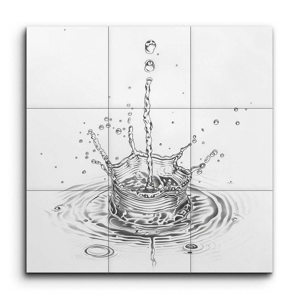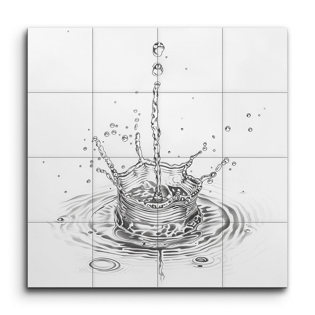 Transform your space with our stunning tile mural, featuring a hyper-realistic depiction of a water splash frozen in time. Every droplet and ripple is meticulously rendered, showcasing the delicate and transient nature of water in motion. The crown-like splash at the center draws the eye, while concentric ripples add a dynamic sense of fluidity. This monochromatic masterpiece captures the play of light and shadow, creating a visually captivating and serene focal point for any room.