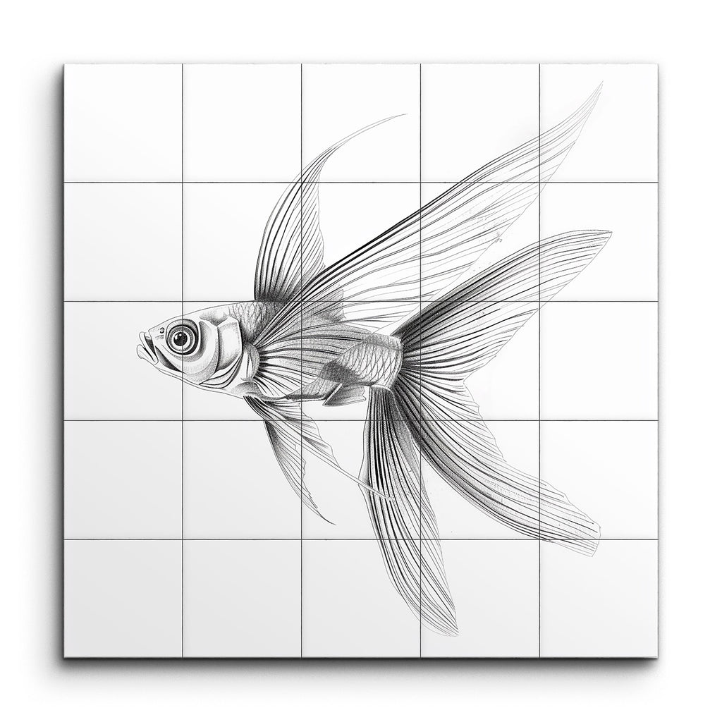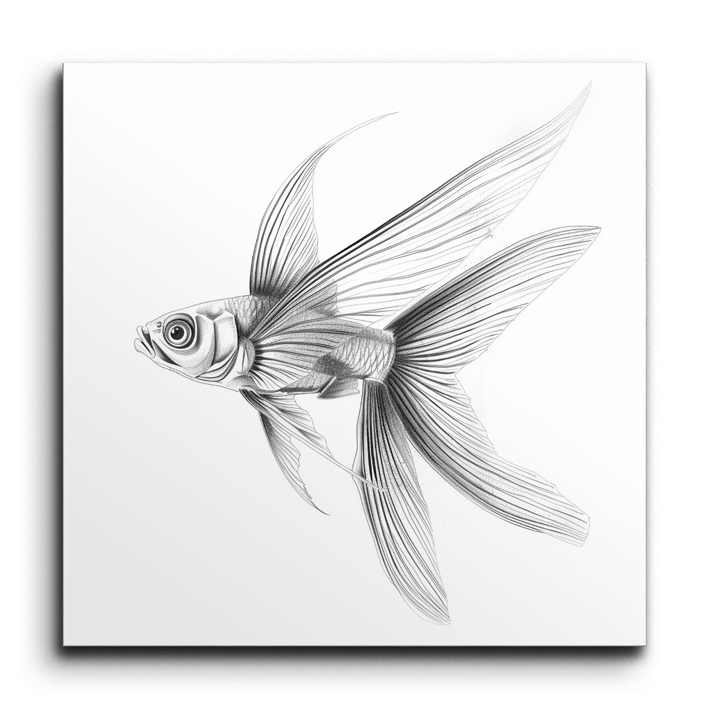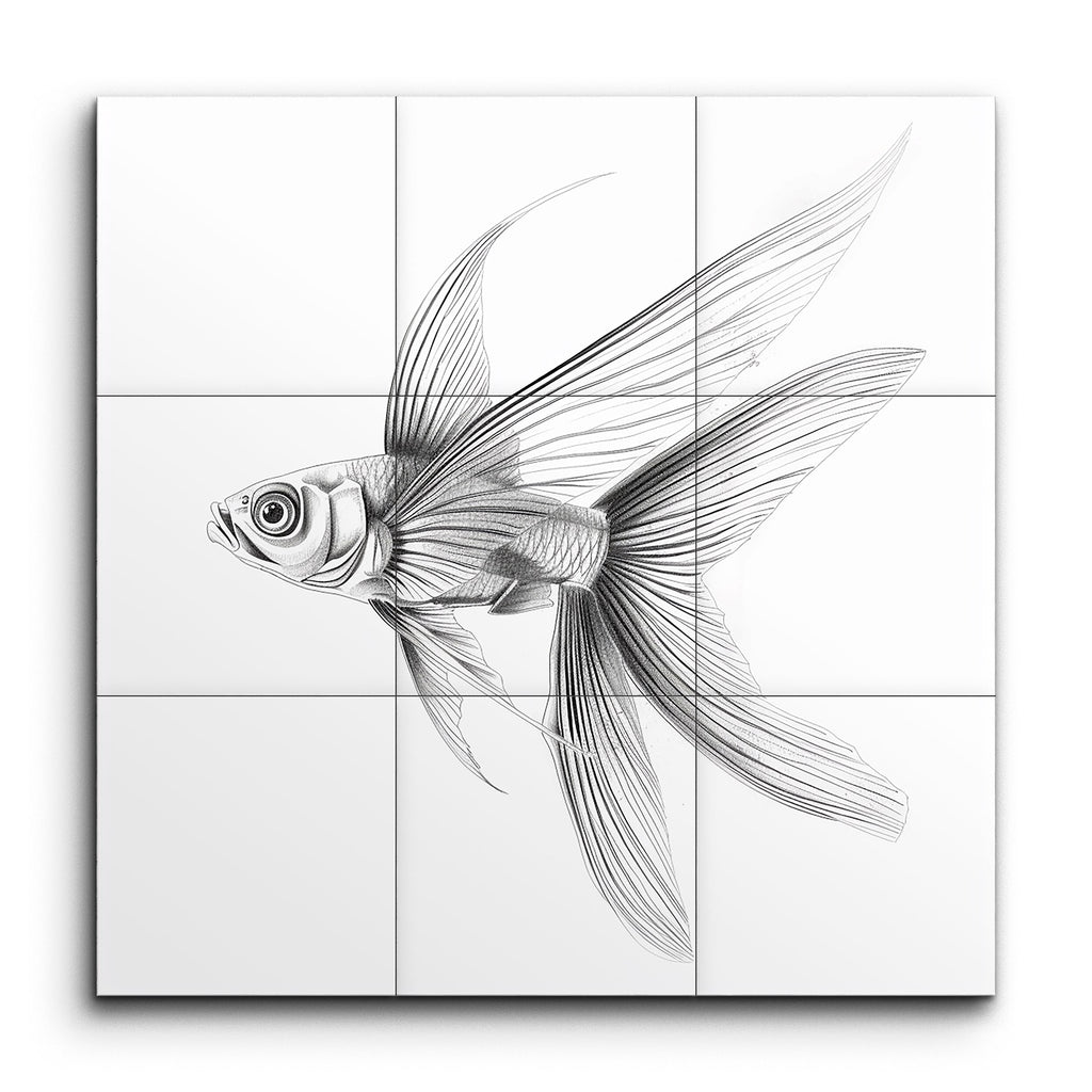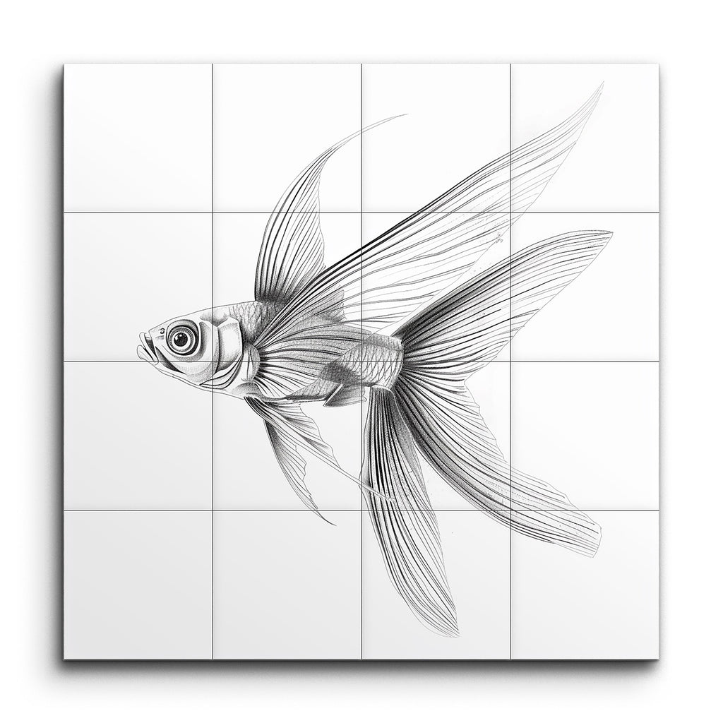 Transform your space with this captivating tile mural featuring a stunning angelfish illustration. Rendered in a monochromatic palette, the artwork showcases the fish's elongated, flowing fins and smooth, gradient-shaded body. Each fin ray is meticulously detailed, creating a dynamic sense of movement and grace. The lifelike eye, with its clear iris and pupil, adds a touch of realism. This mural marries scientific precision with artistic elegance, making it a timeless piece for any setting.