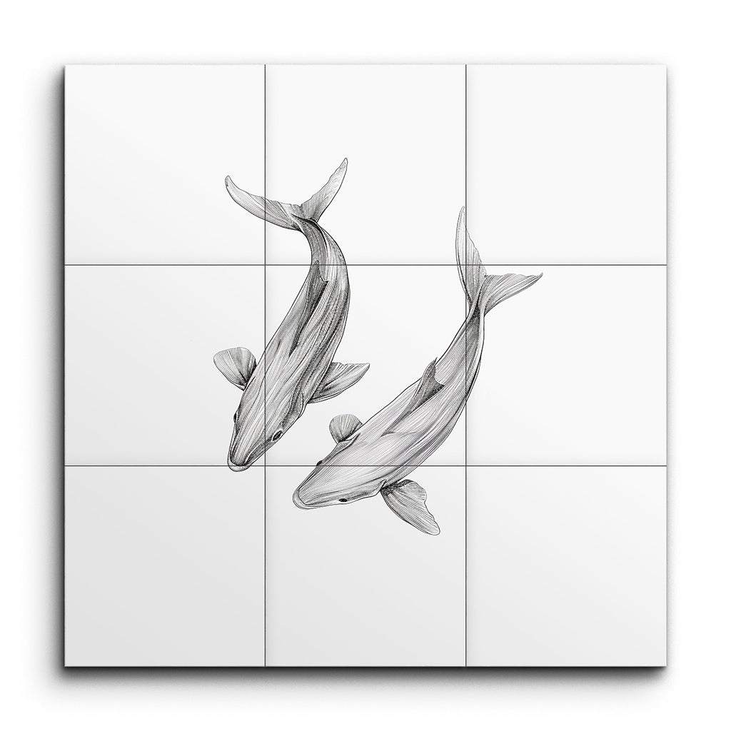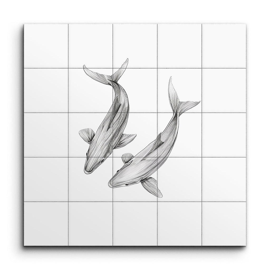 Immerse yourself in the serene beauty of the ocean with this exquisite tile mural. Featuring two whales rendered in stunning detail, the artwork captures their textured bodies and graceful movements with fine, precise lines. The subtle shading and varied line thickness create a three-dimensional, fluid effect, giving the impression of the whales swimming in perfect harmony. The minimalist, monochromatic design emphasizes the elegance and form of these majestic creatures, adding a touch of tranquility to any space.