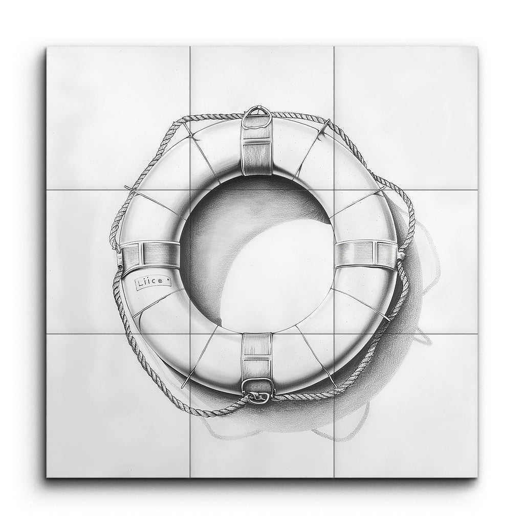 Transform your space with this stunning tile mural featuring a hyper-realistic drawing of a life preserver. The artwork captures every intricate detail, from the meticulously shaded segments to the intricately twisted ropes. The three-dimensional effect achieved through precise shading and highlights brings the life preserver to life, adding depth and texture to any setting. This mural is a testament to the beauty found in simple objects, rendered with extraordinary realism.