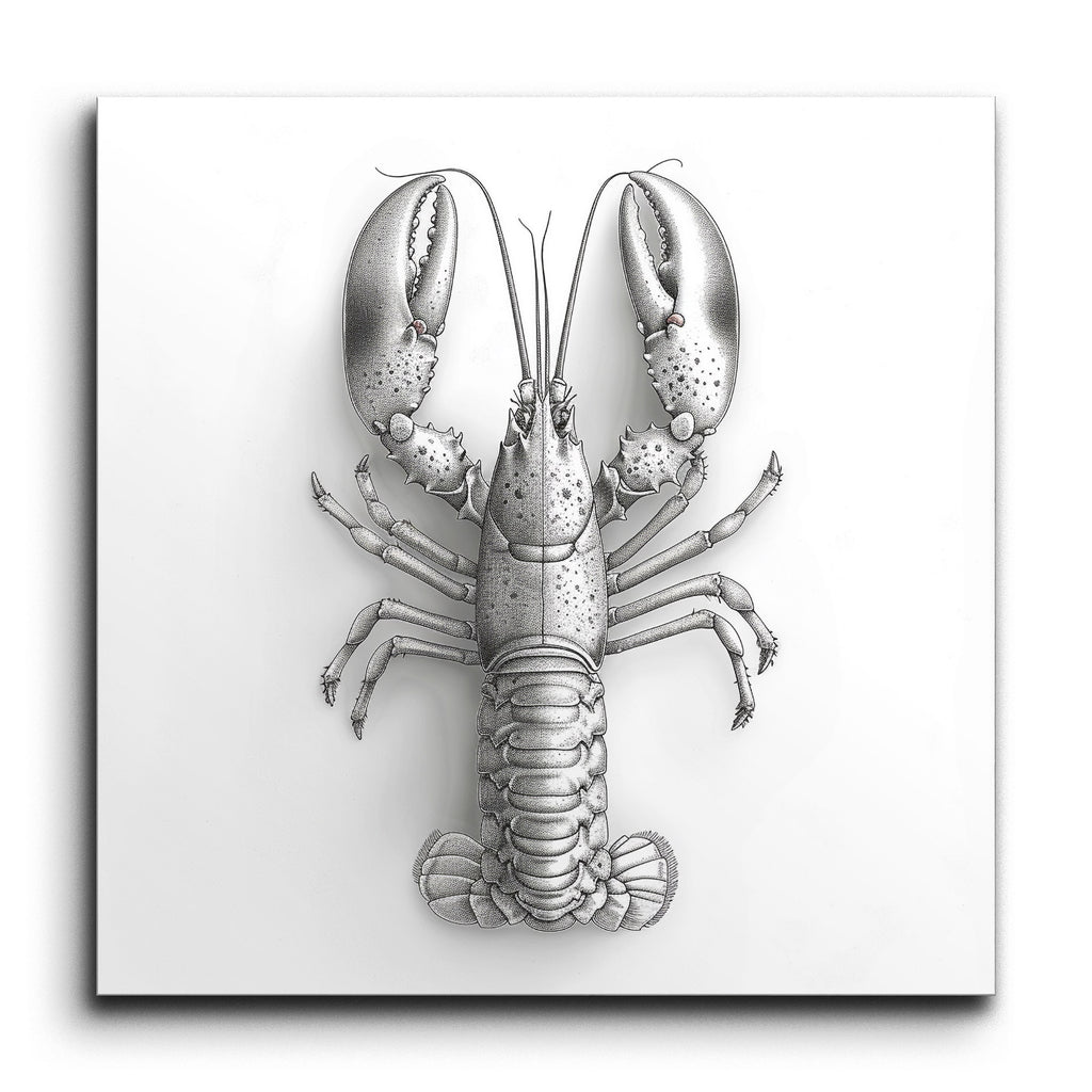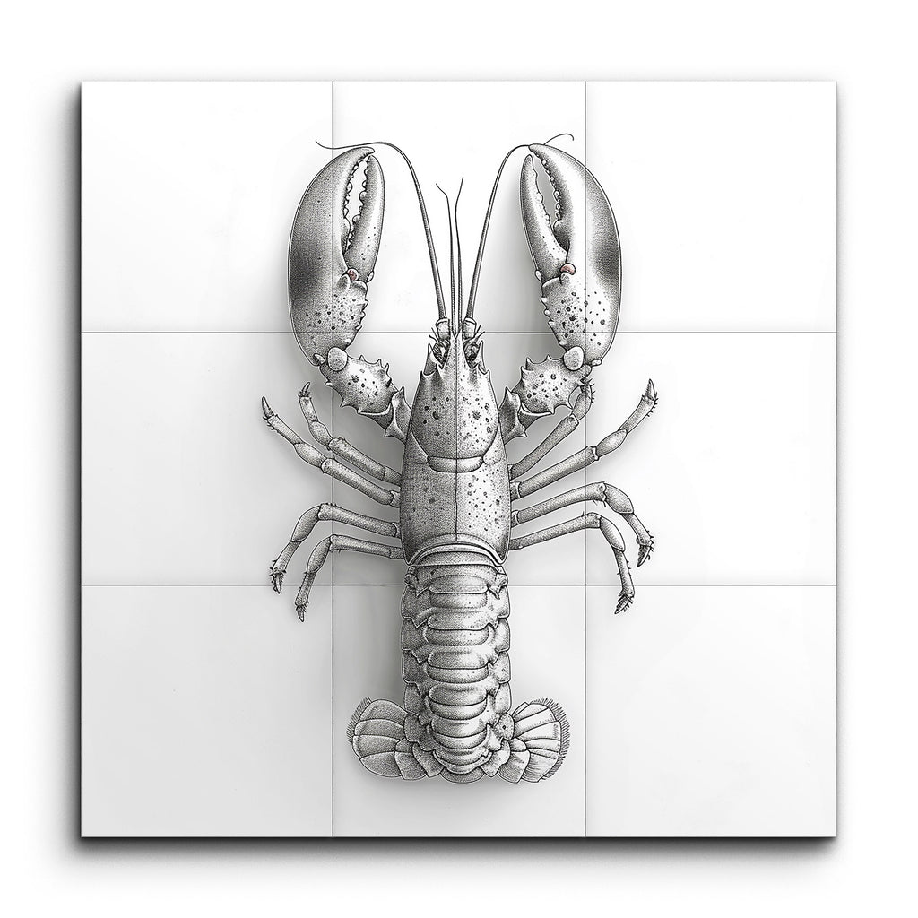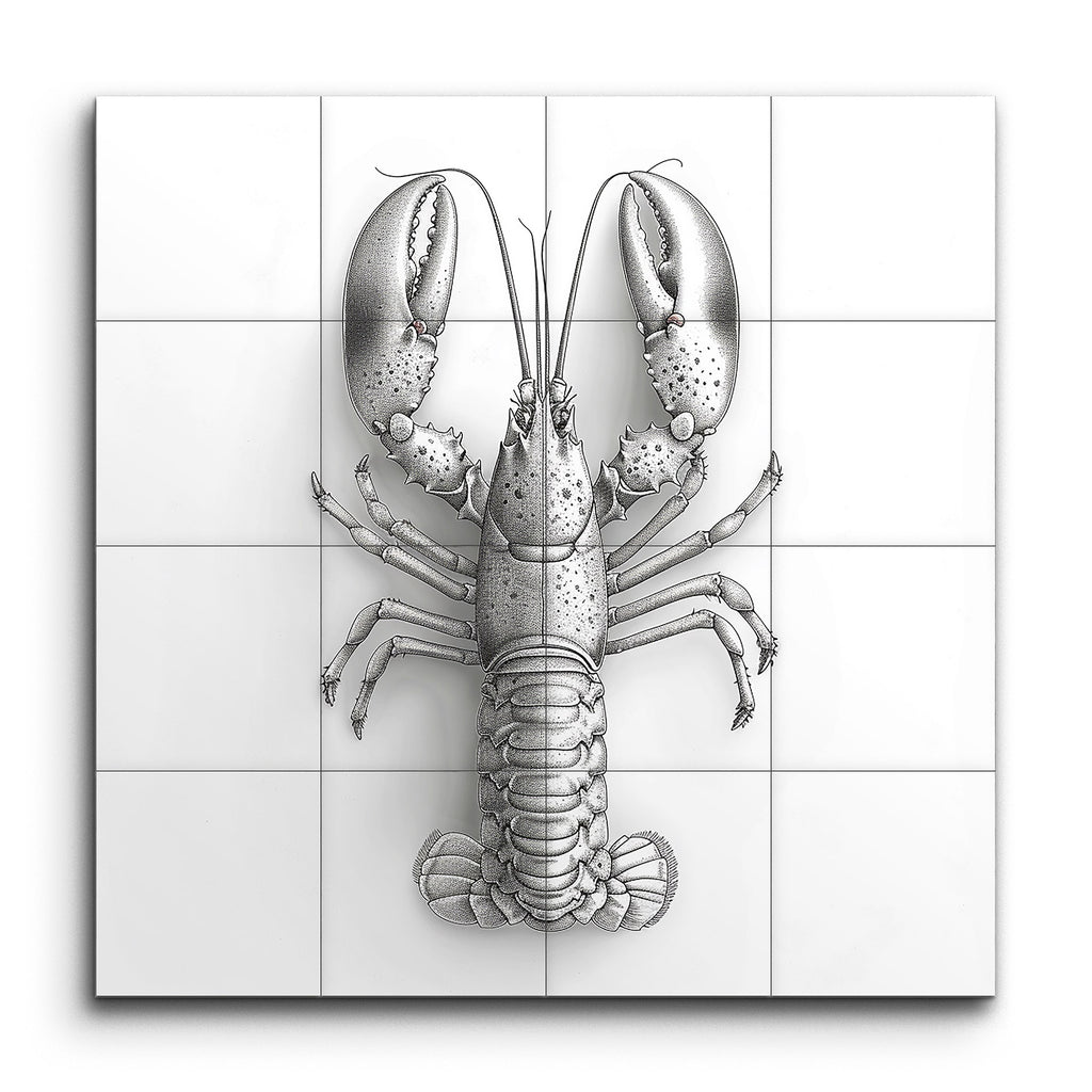 Immerse yourself in the mesmerizing intricacy of this tile mural, featuring a lifelike illustration of a lobster. The artwork captures every exquisite detail, from the textured claws to the slender, jointed legs. Rendered with meticulous shading and fine lines, the lobster's form is brought to life, showcasing its segmented body and graceful antennae. This monochromatic masterpiece emphasizes the natural beauty and precision of the creature, making it a captivating and elegant addition to any space.