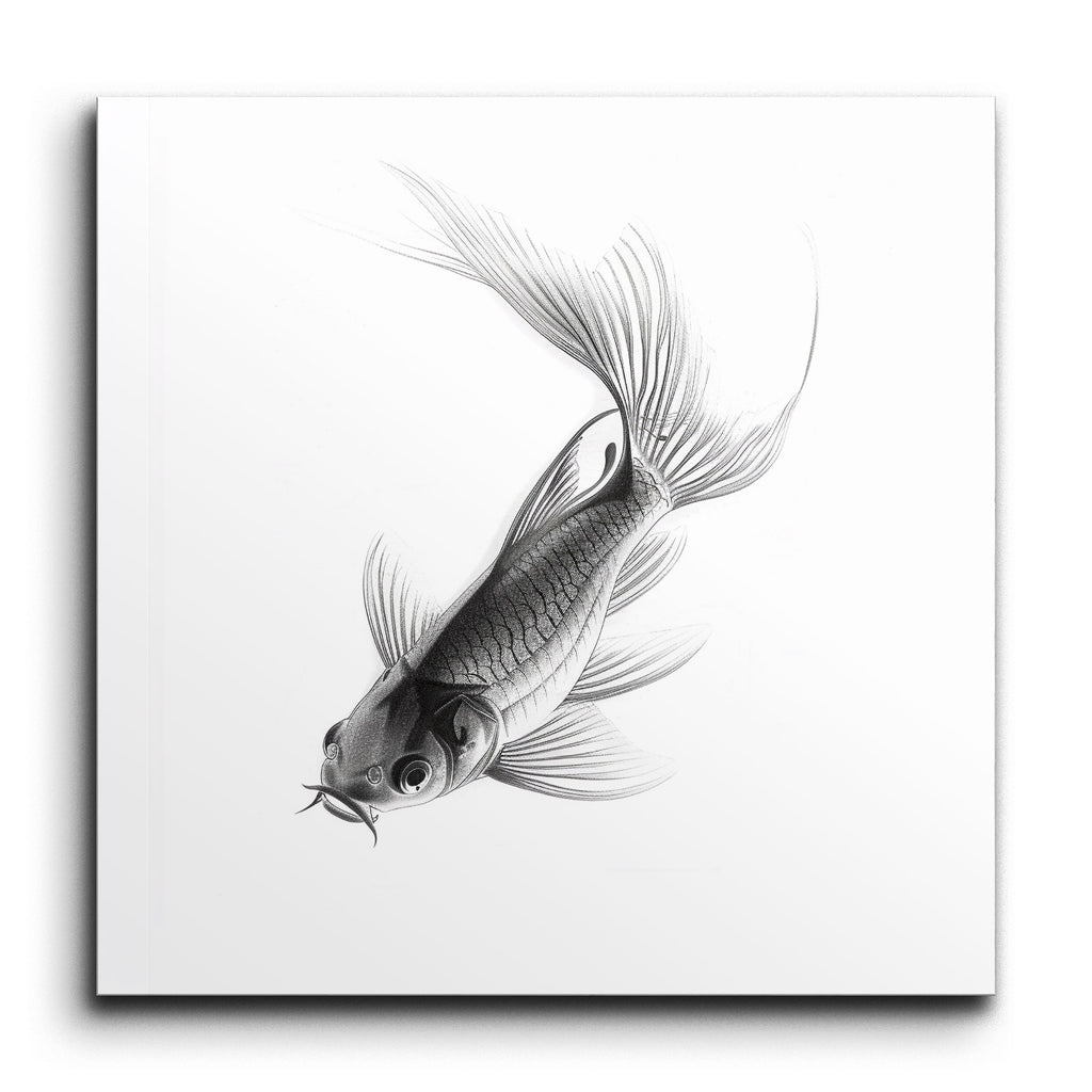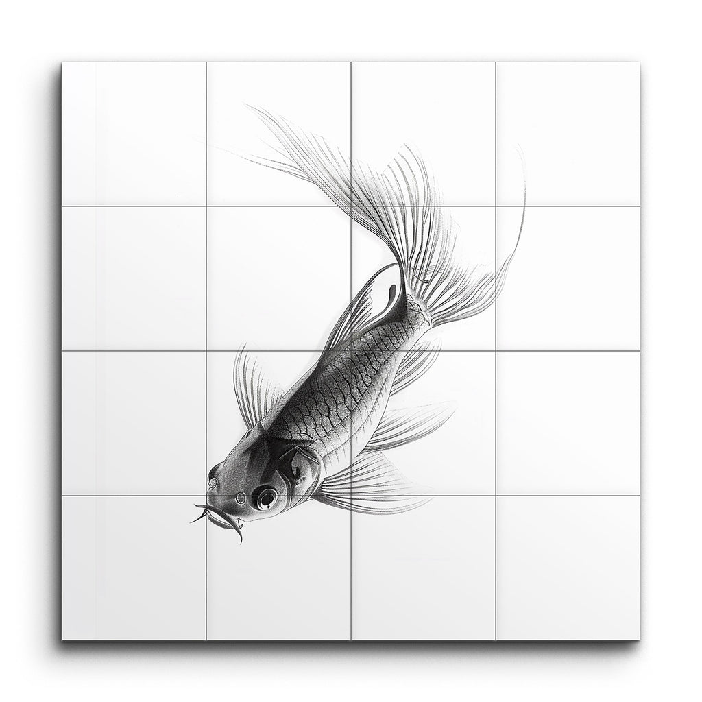 Transform your space with this stunning tile mural, featuring a meticulously detailed illustration of a goldfish in monochrome tones. The fish, rendered with lifelike precision, gracefully swims in a dynamic, diagonal pose, its elongated fins and tail flowing behind. Each scale is intricately detailed, capturing the essence of texture and realism. The minimalist design emphasizes the fish's beauty and elegance, creating a serene and sophisticated focal point for any room.