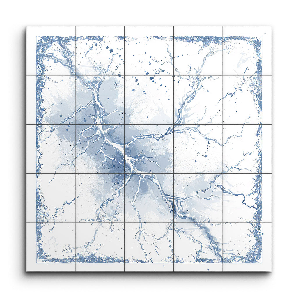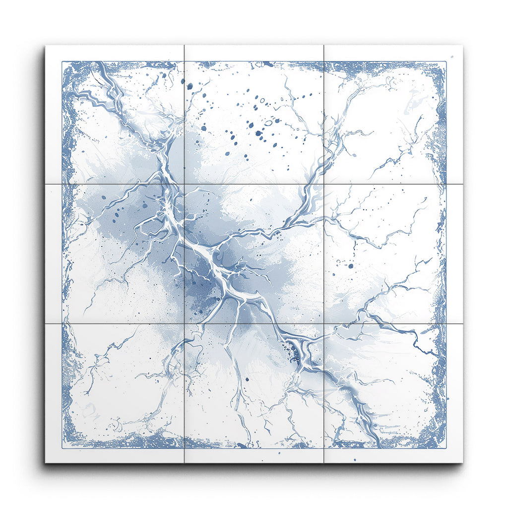 Immerse yourself in the mesmerizing beauty of our tile mural, a captivating abstract composition that draws inspiration from nature's intricate patterns. The artwork showcases a network of branching lines in varying shades of blue, creating a dynamic sense of depth and movement. The dense cluster at the center gradually disperses towards the edges, evoking images of ice, lightning, or tree branches. Framed by a delicate, lace-like border, this piece exudes a refined elegance that will transform any space.