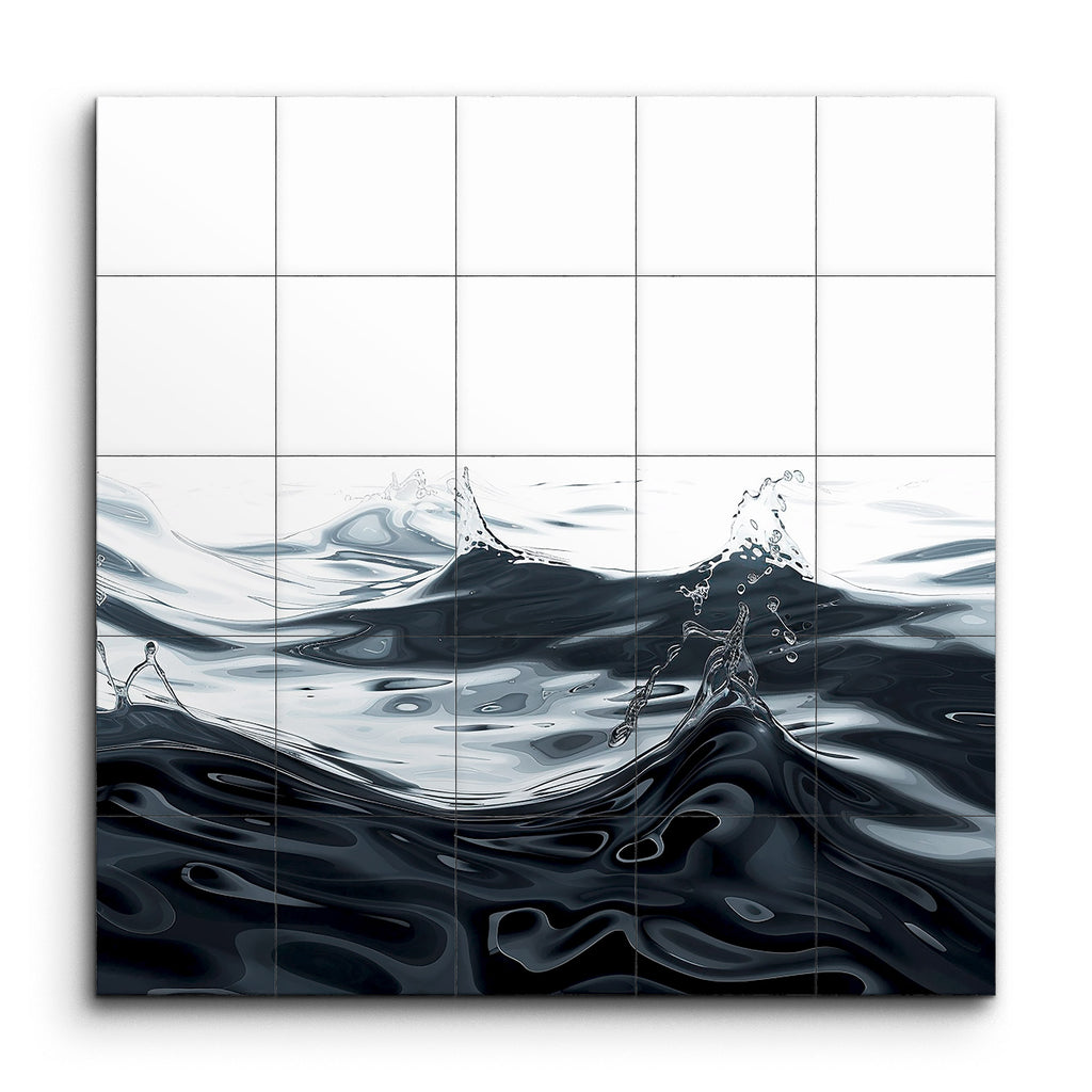 Immerse yourself in the mesmerizing beauty of the ocean with this striking tile mural. The dynamic scene captures the energy and movement of ocean waves in hyper-realistic detail. Deep blues and blacks create a profound sense of depth, while lighter blues and whites highlight the crests and reflections, adding to the lifelike quality. The meticulous attention to texture and motion brings the waves to life, making them appear as though they are about to crash out of the frame. Experience the ocean's beauty and power in your space.