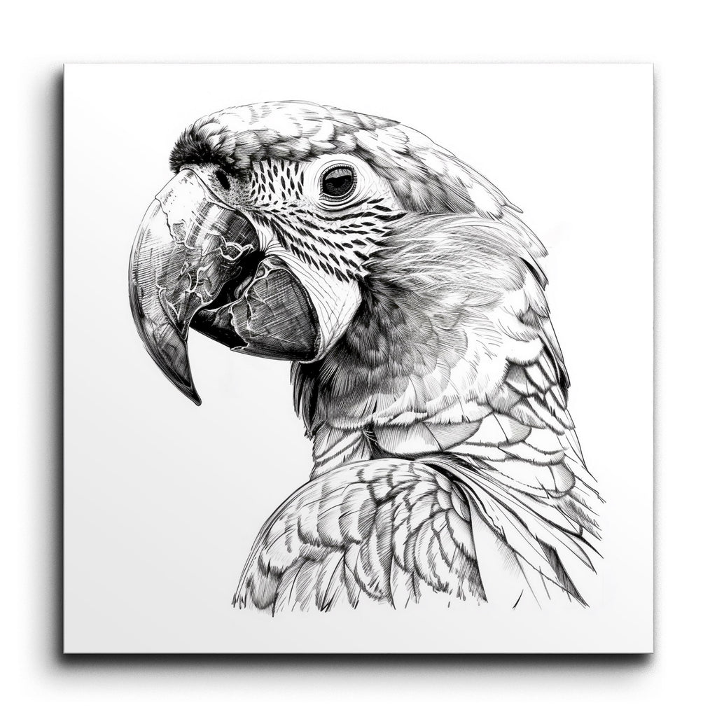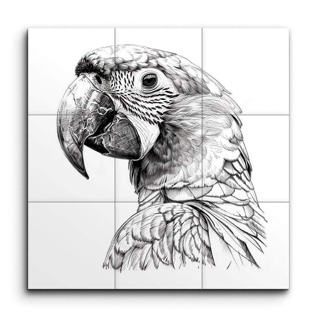 Transform your space with this mesmerizing tile mural featuring a meticulously detailed black-and-white illustration of a parrot. The artwork captures the parrot's essence with lifelike precision, focusing on its expressive eye, robust beak, and intricately layered feathers. Each line and texture is rendered with exceptional care, creating a stunning piece that brings the beauty and elegance of this magnificent bird into your home.
