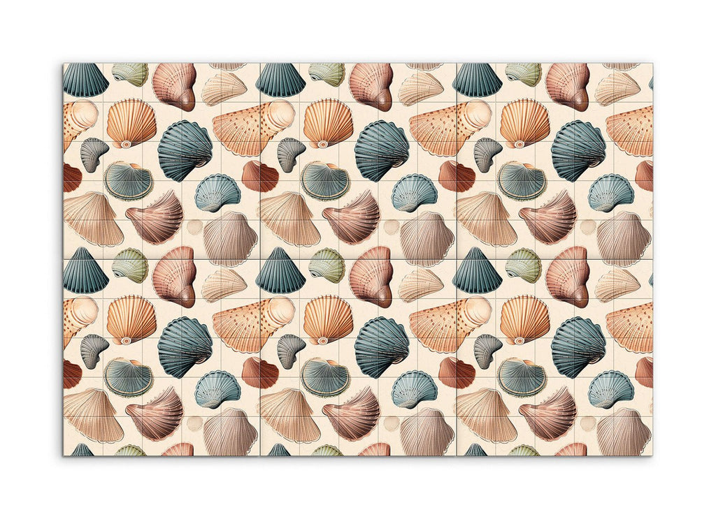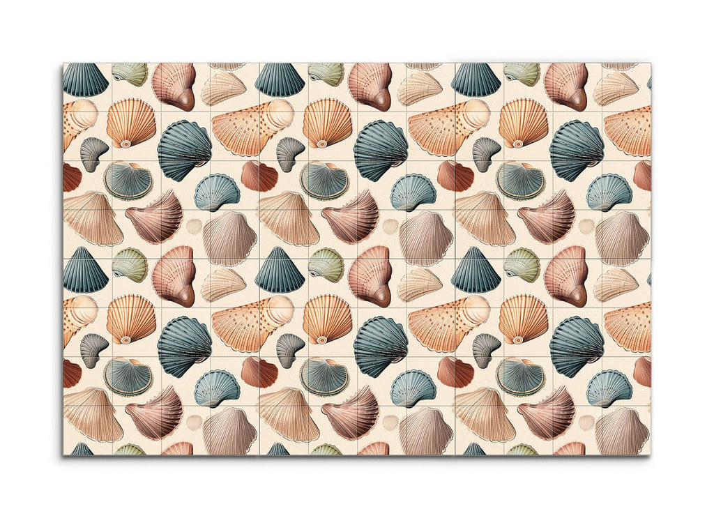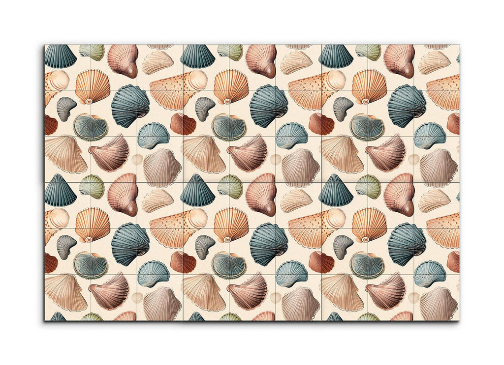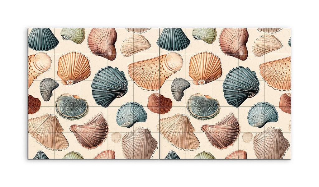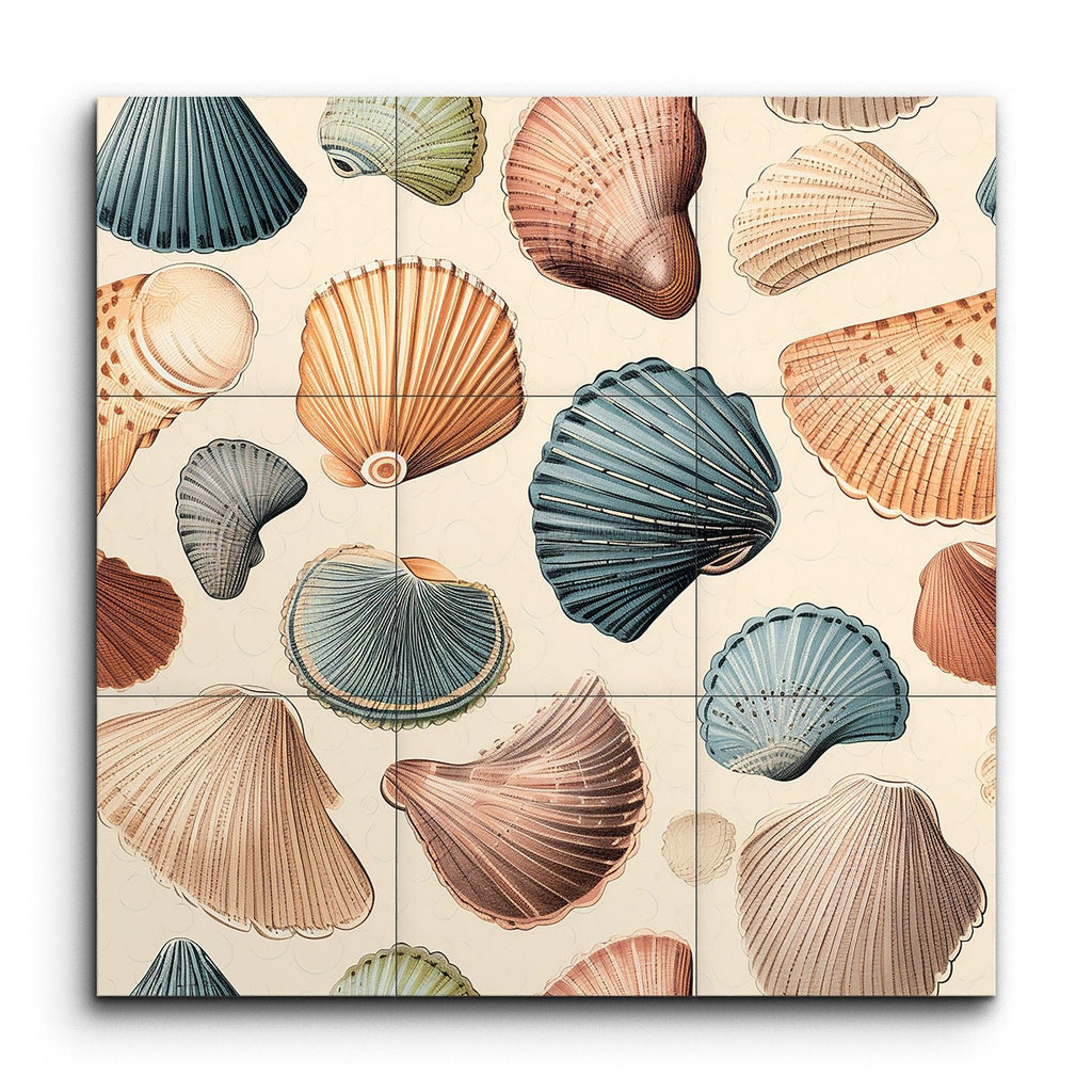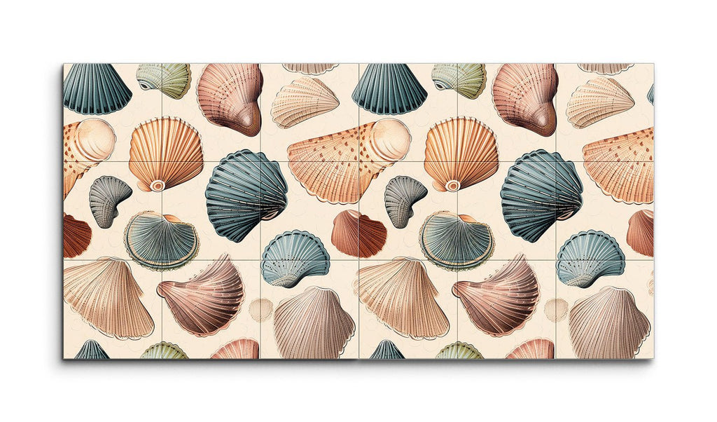 Transform your space with this captivating tile mural, featuring a meticulously detailed collection of seashells arranged in an artfully balanced pattern. Each shell is rendered with lifelike precision, showcasing unique textures and natural colors, from muted blues and greens to warm browns and creams. This realistic yet artistically elegant mural brings the serene beauty of the ocean into your home, making it both a visual delight and an educational piece. Perfect for adding a touch of coastal charm to any setting.