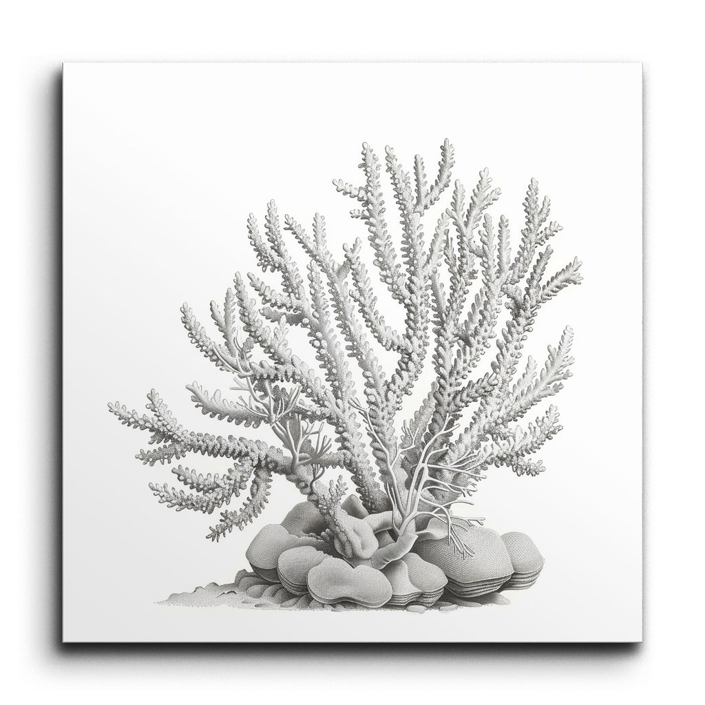 Immerse your space in the serene beauty of the ocean with our exquisite tile mural, featuring a meticulously detailed illustration of a coral structure. Inspired by marine life, this artwork captures the intricate patterns and textures of coral branches and smooth, rounded stones at its base. The monochromatic color scheme highlights the delicate shading and precision, offering a realistic and scientifically reminiscent portrayal. Perfect for adding a touch of natural elegance and sophistication to any room.