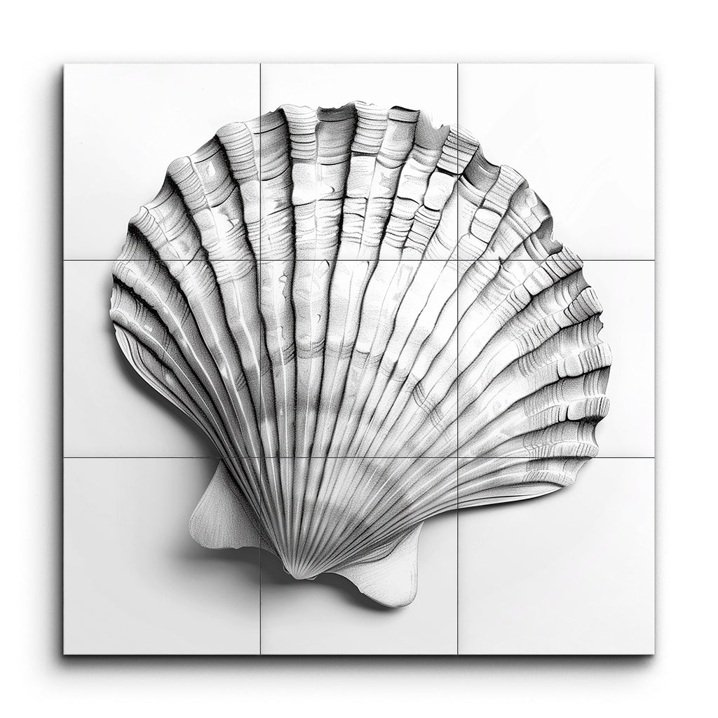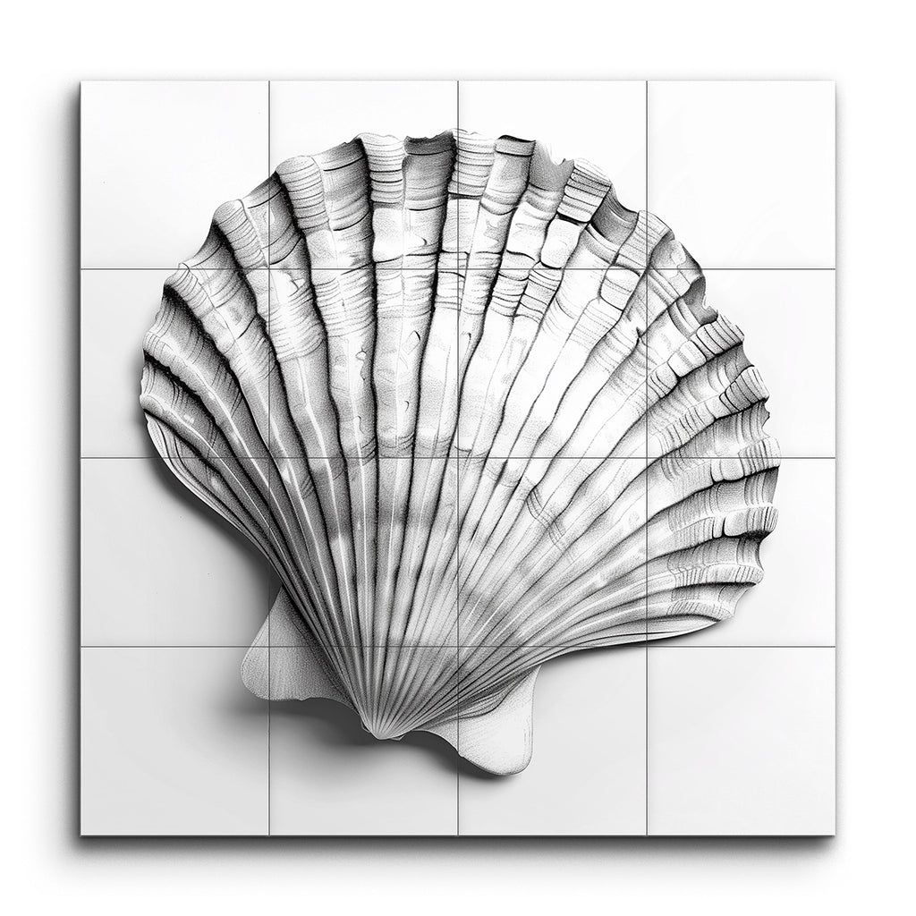 Immerse your space in the serene beauty of nature with our photorealistic tile mural featuring a highly detailed scallop shell. Rendered in grayscale, this artwork masterfully captures the intricate textures and patterns of the shell’s surface. The meticulous illustration of ridges and grooves highlights the natural symmetry and radial design, while the play of light and shadow adds depth and dimension, creating a striking three-dimensional effect. Perfect for adding a touch of lifelike elegance to any setting.