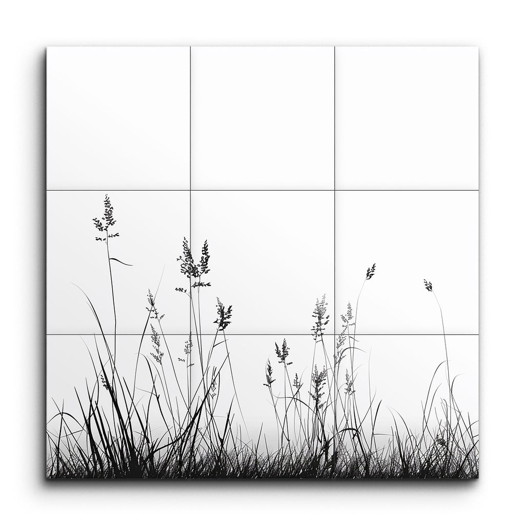Transform your space with this serene tile mural, featuring a minimalist depiction of tall grasses and delicate wildflowers. Rendered in grayscale, the artwork captures the natural elegance and tranquility of the scene with fine lines and subtle gradients. The elongated grass blades and intricate wildflowers suggest a gentle breeze, creating a soft, ethereal quality. Emphasizing simplicity and beauty, this mural invites a sense of calm and contemplation into any setting.
