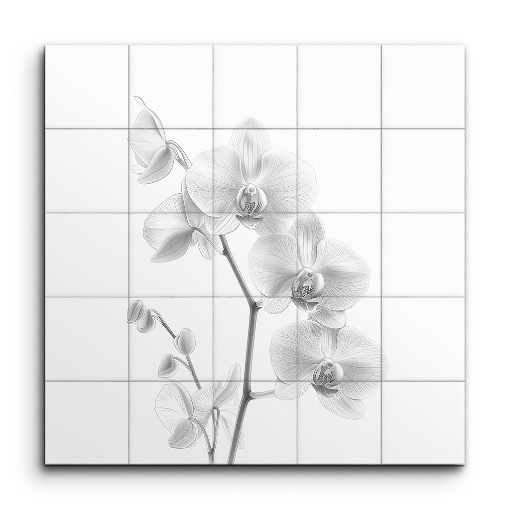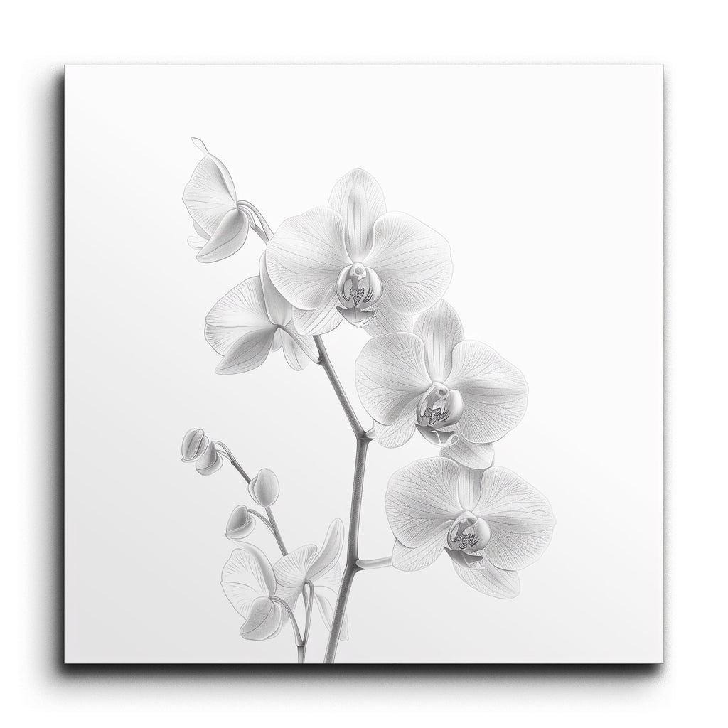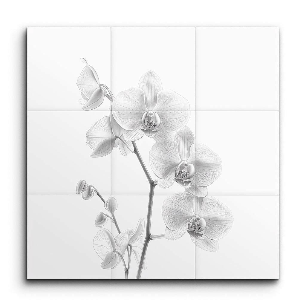 Immerse your space in the serene elegance of our Orchid Tile Mural. This exquisite piece features a minimalist, monochromatic rendering of an orchid plant, meticulously detailed to capture the delicate textures and veins of each petal. The artwork showcases orchids in various stages of bloom, adding depth and life. With its subtle use of light and shadow, the mural achieves a three-dimensional realism, highlighting the natural beauty of the orchids through simplicity and precision.