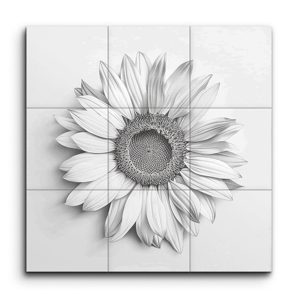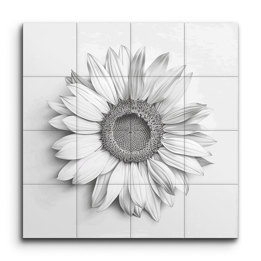Transform your space with this stunning grayscale tile mural, featuring a meticulously detailed sunflower. The artwork captures the intricate structure of the sunflower in exquisite detail, with each petal and the central disc rendered with fine lines and subtle shading. The realistic, botanical accuracy of the piece brings a classic, almost photographic quality to your walls, emphasizing the beauty of form and texture in monochrome elegance. Perfect for adding a touch of nature-inspired sophistication to any setting.