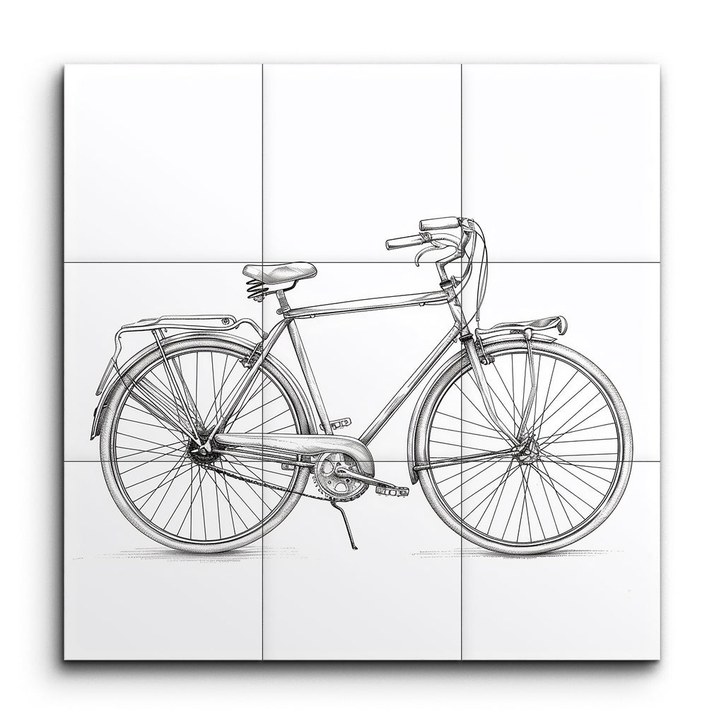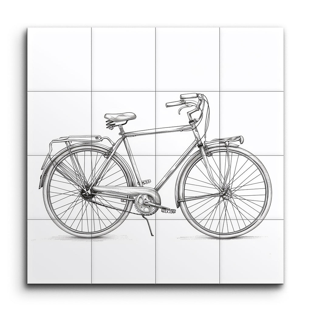 Experience the timeless elegance of cycling with our stunning tile mural, featuring a highly detailed monochromatic line drawing of a classic bicycle. Captured in side profile, this artwork showcases the bicycle’s intricate structure, from meticulously drawn spokes and subtly textured tires to the confident lines of the frame and the intricacies of the gear system. The precision and realism of the drawing, combined with its classic monochromatic palette, offer a visually captivating and technically impressive tribute to the beauty of bicycles.