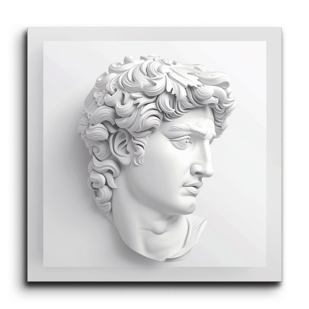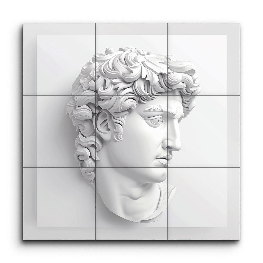 Elevate your space with our stunning tile mural, showcasing a meticulously detailed three-dimensional sculpture of a classical male head. Reminiscent of ancient Greek or Roman art, this profile view captures a serious and contemplative expression with finely chiseled features and intricate curls. The neoclassical style emphasizes idealized beauty and anatomical precision, enhanced by expert use of light and shadow. This artwork exudes timeless elegance and calm dignity, perfect for any sophisticated setting.