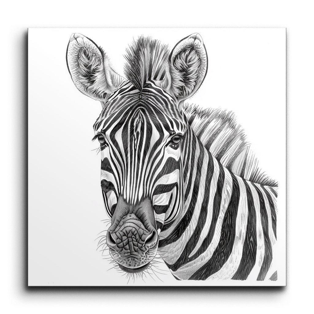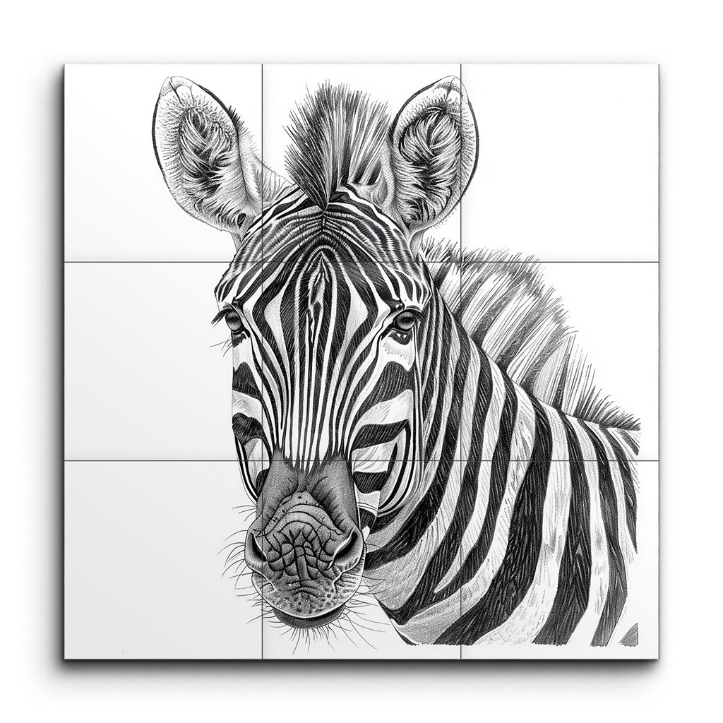 Transform your space with our stunning black-and-white tile mural featuring a highly detailed illustration of a zebra. This captivating artwork showcases the zebra's head and upper body, with intricate patterns of stripes meticulously rendered through fine lines and shading. The lifelike eyes, expressive ears, and textured mane create a sense of depth and realism, while the precise depiction of the stripes enhances the dynamic and engaging visual appeal. Elevate your decor with this exquisite, three-dimensional masterpiece.