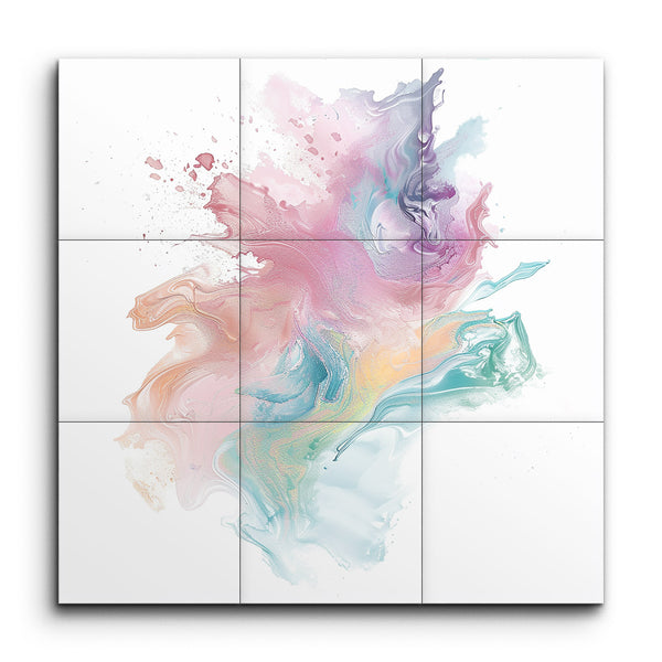 Transform your space with this captivating tile mural, featuring an abstract composition of fluid, swirling forms and harmonious pastel hues. Soft pinks, purples, peaches, blues, and greens blend seamlessly, creating a dreamy, ethereal effect reminiscent...