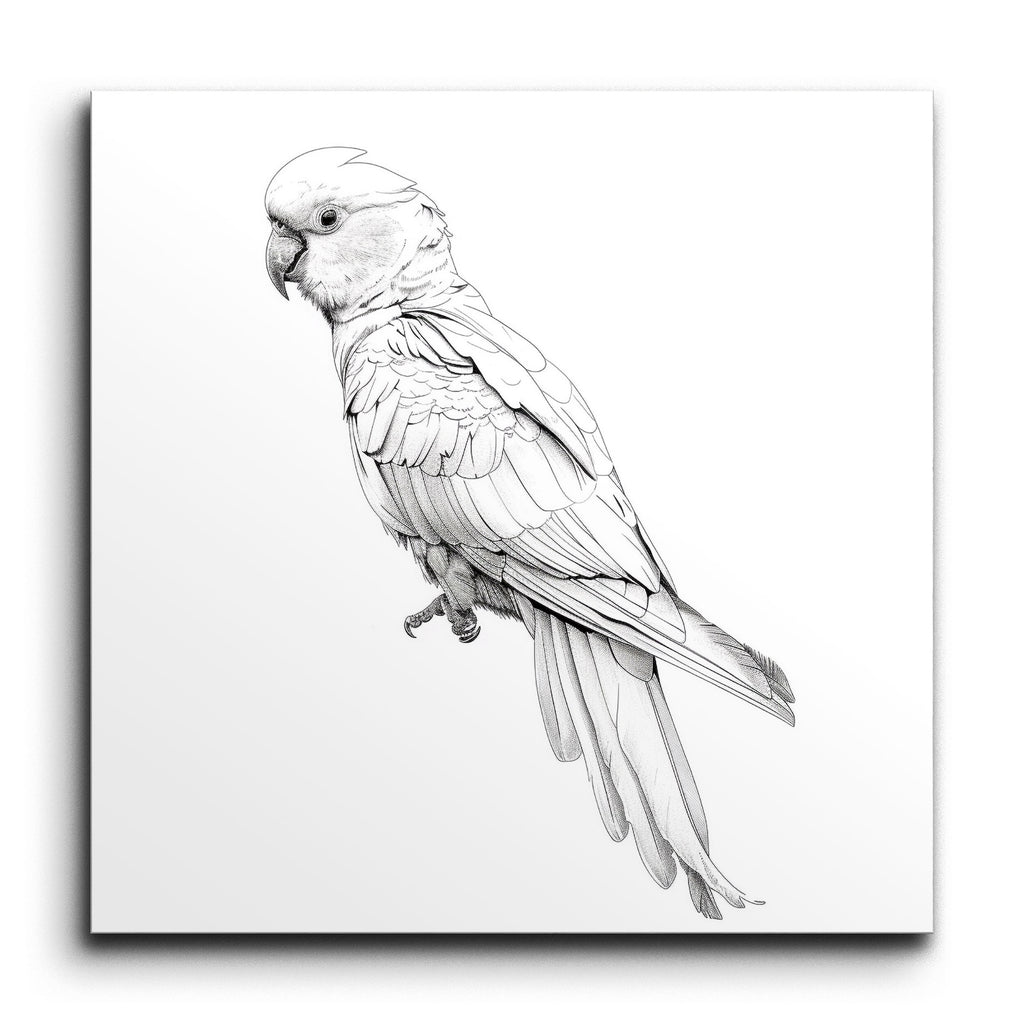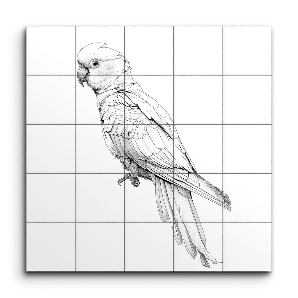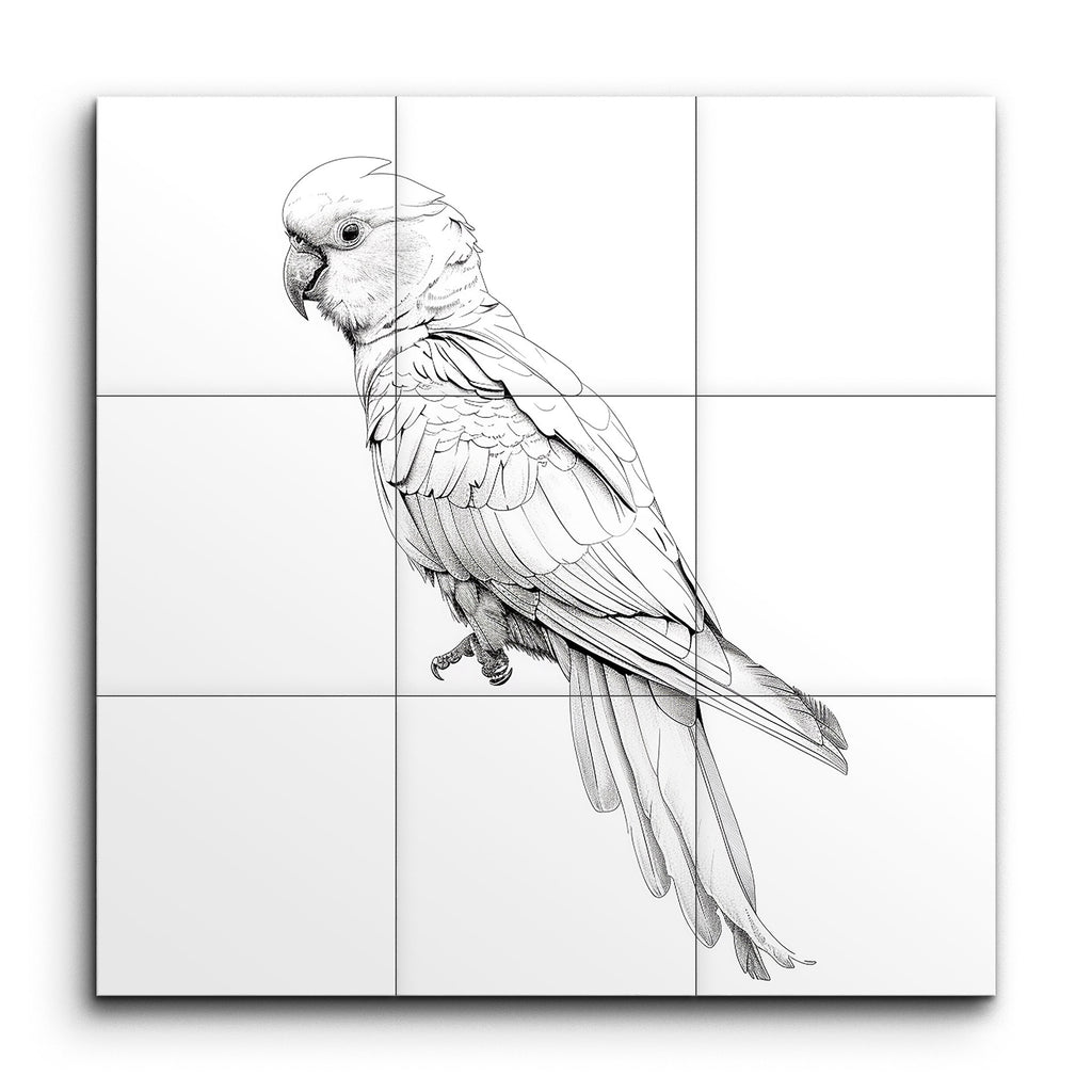 Trasforma il tuo spazio con questo straordinario murale in ceramica che presenta un disegno a linee meticolosamente dettagliato di un pappagallo. L'illustrazione realistica cattura l'eleganza e la grazia naturali del pappagallo, con dettagli intricati che portano le sue piume in vita. Appollaiato con grazia, la forma del pappagallo è splendidamente messa in risalto, mostrando i fini contorni e le texture del suo piumaggio. Lo stile minimalista e monocromatico enfatizza la bellezza intrinseca dell'uccello, rendendo questo murale un affascinante punto focale per qualsiasi stanza.