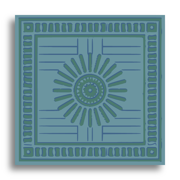 This decor tile showcases a central sunburst motif with elegant radiating lines, encircled by an array of geometric shapes and borders. Its symmetrical design reflects the classic charm of traditional encaustic patterns. The muted earth tones of dark gray and terracotta lend a sense of timeless sophistication, while the intricate detailing adds depth and character to any setting.