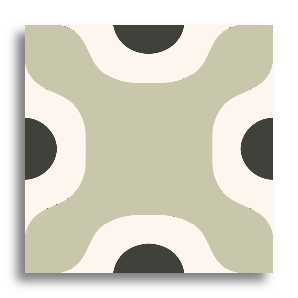 This decor tile showcases a striking geometric pattern with symmetrical, curved shapes that dance across its surface, creating a harmonious sense of movement and balance. At its heart lies a bold, abstract motif, encircled by rhythmic circular elements. The color palette, rich in earthy tones of terracotta and beige, exudes warmth and a welcoming atmosphere. The design's clean lines and modern aesthetic capture simplicity and elegance, making it a versatile addition to any space.