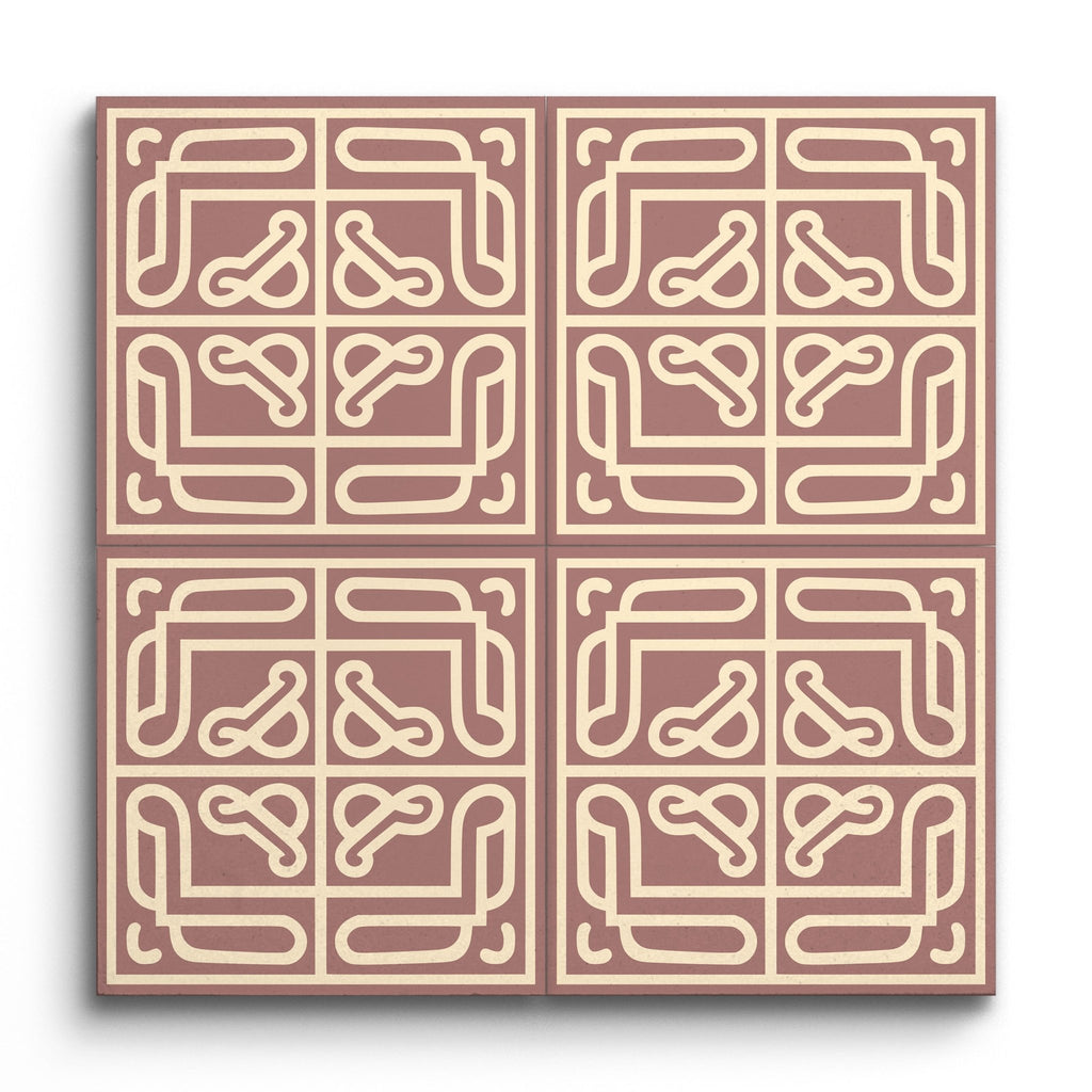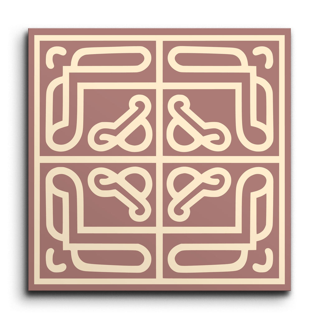 Deze decortegel toont een harmonieuze mix van ingewikkelde lussen en krommingen, geïnspireerd door traditionele encaustische stijlen. De warme, aardse bruine achtergrond wordt elegant gecontrasteerd door crèmekleurige lijnen die een symmetrisch en sierlijk patroon vormen. Het klassieke ontwerp roept een gevoel van tijdloosheid op, waardoor het een perfecte keuze is voor degenen die een vleugje vintage charme aan hun ruimte willen toevoegen. De geometrische motieven en herhalende elementen versterken de decoratieve aantrekkingskracht, waardoor een visueel boeiend effect ontstaat.